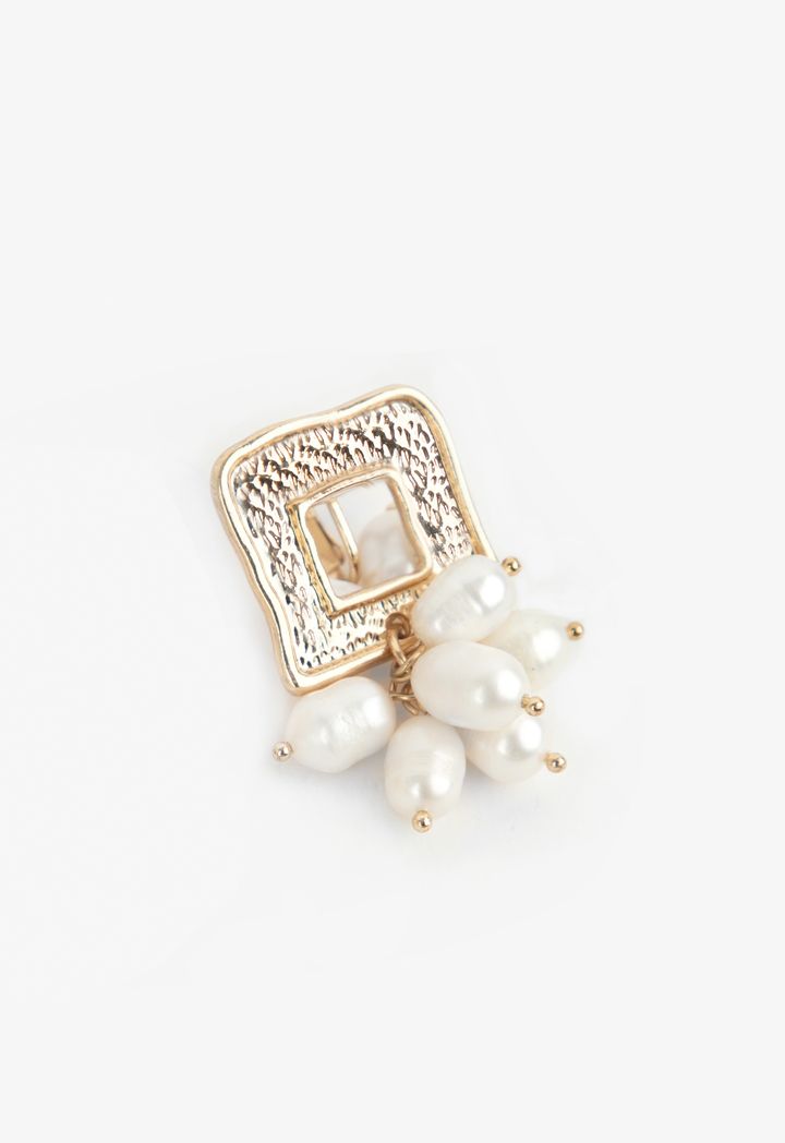 Expand your collection of earrings with this pair of classic faux pearls embellished square design.