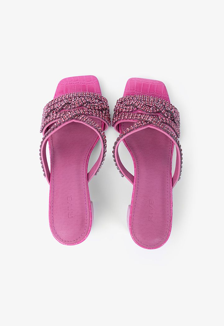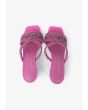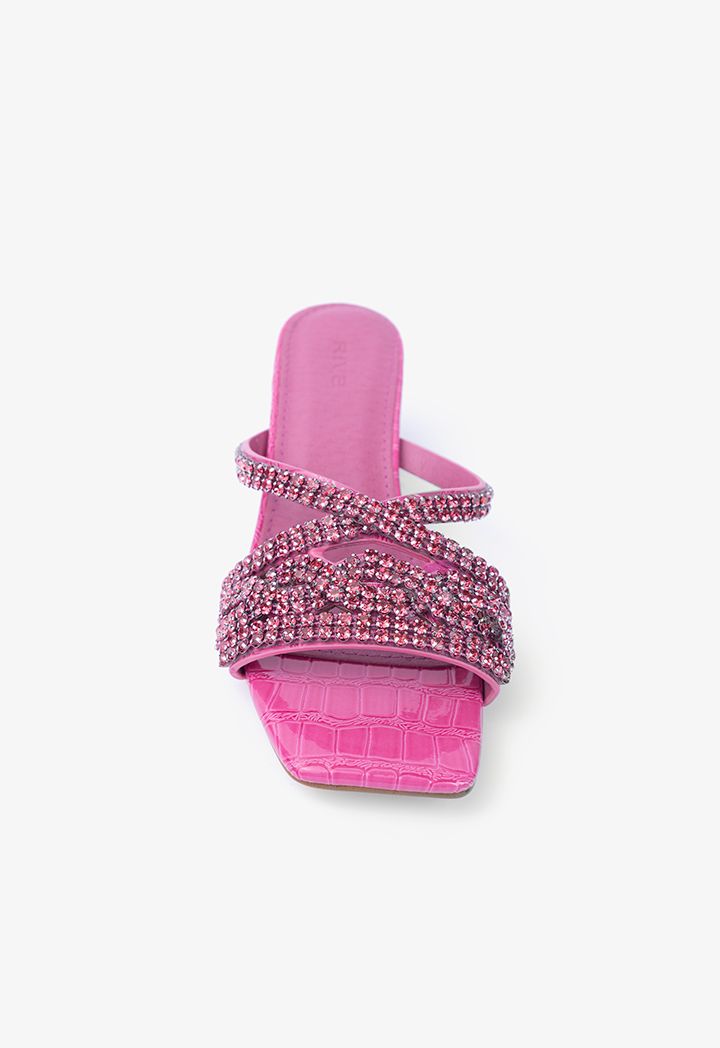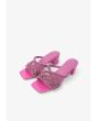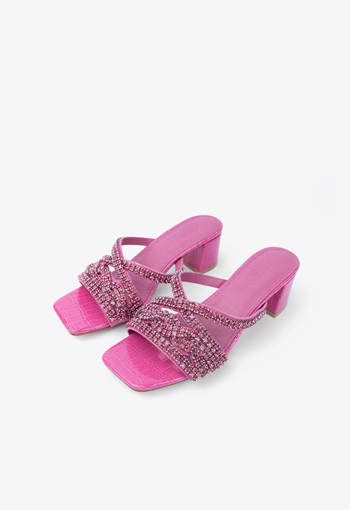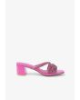 Square Toe Crystal Embellished Straps Heeled Sandals