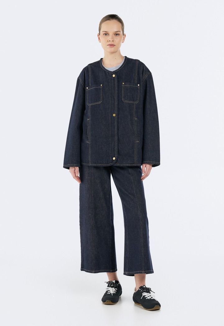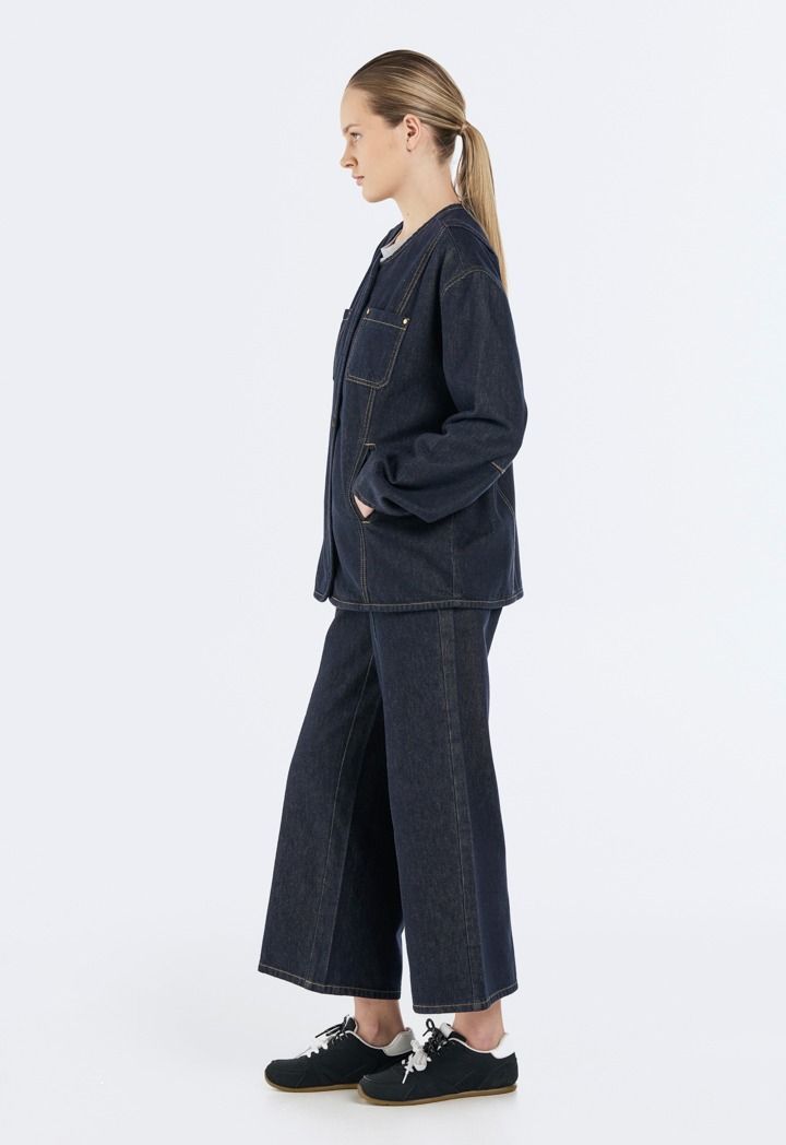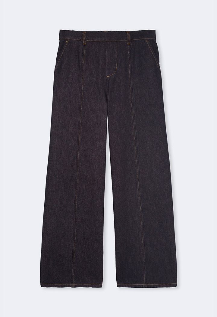 Design: Denim, Stitch Embellished, Side Pockets, High Waist, Straight Cut, Wide Leg