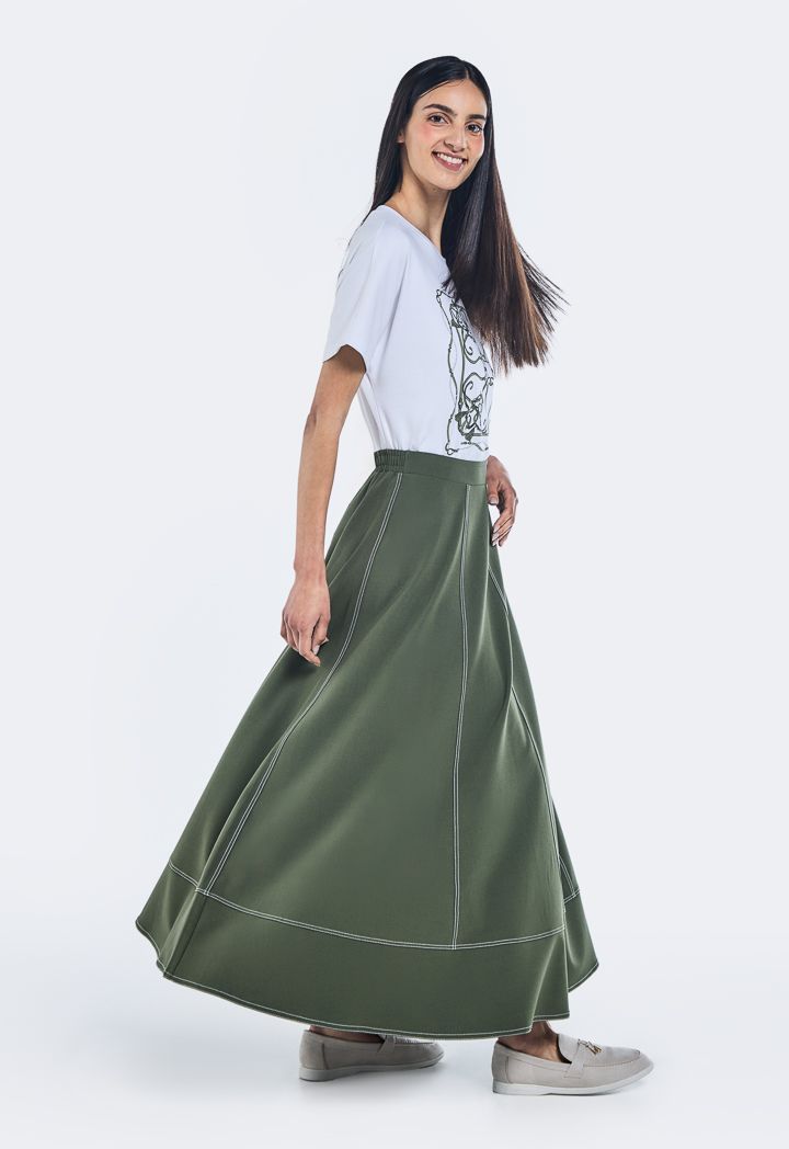 Stitched Flared Maxi Skirt |