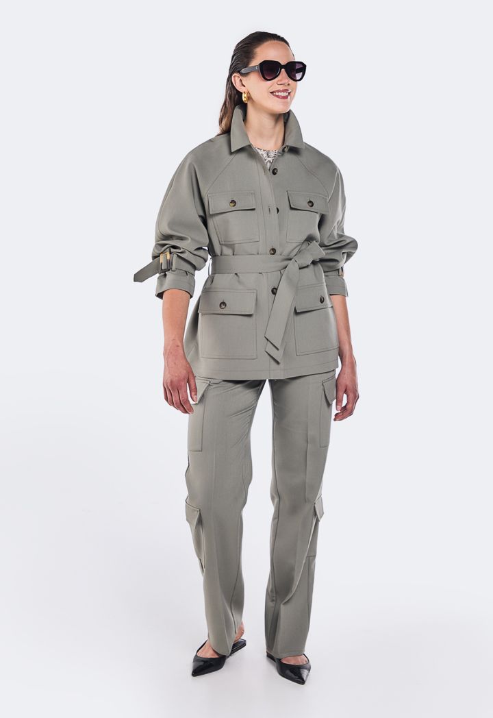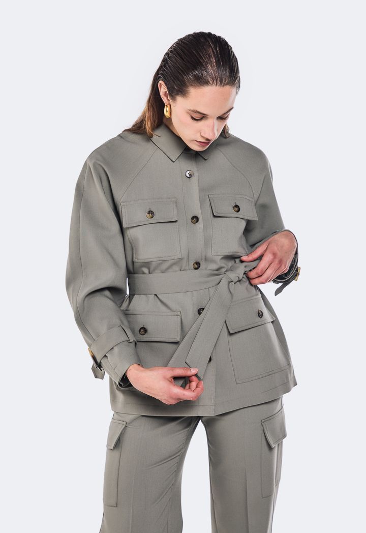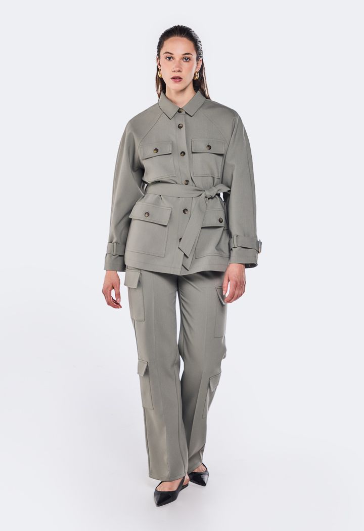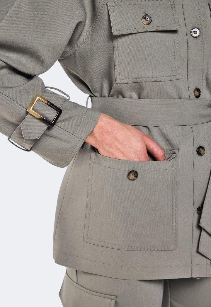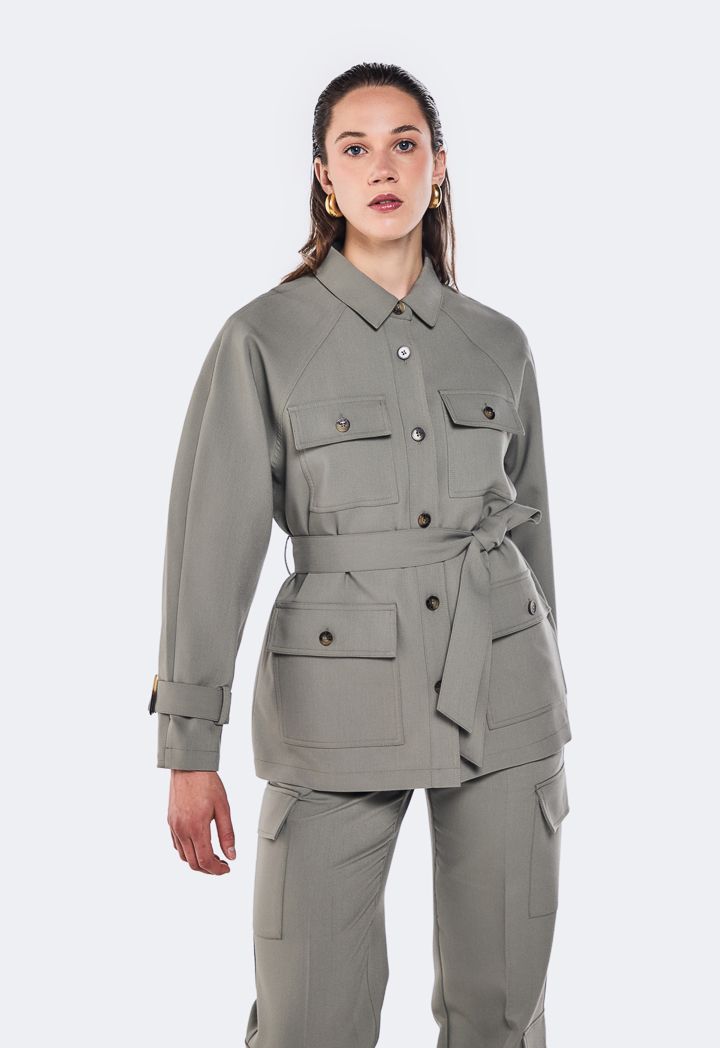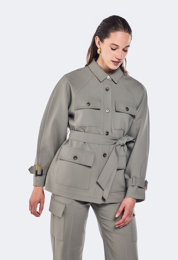 Design : Solid, Flap Pockets, Belted, Attached Lining, Storm Flap