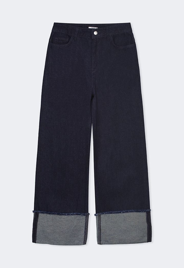 Design: Solid, Folded Hem, Straight Cut, High Waist, Side and Back Pockets