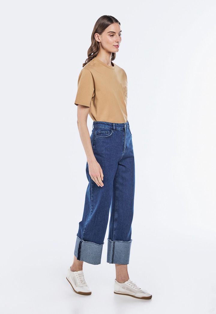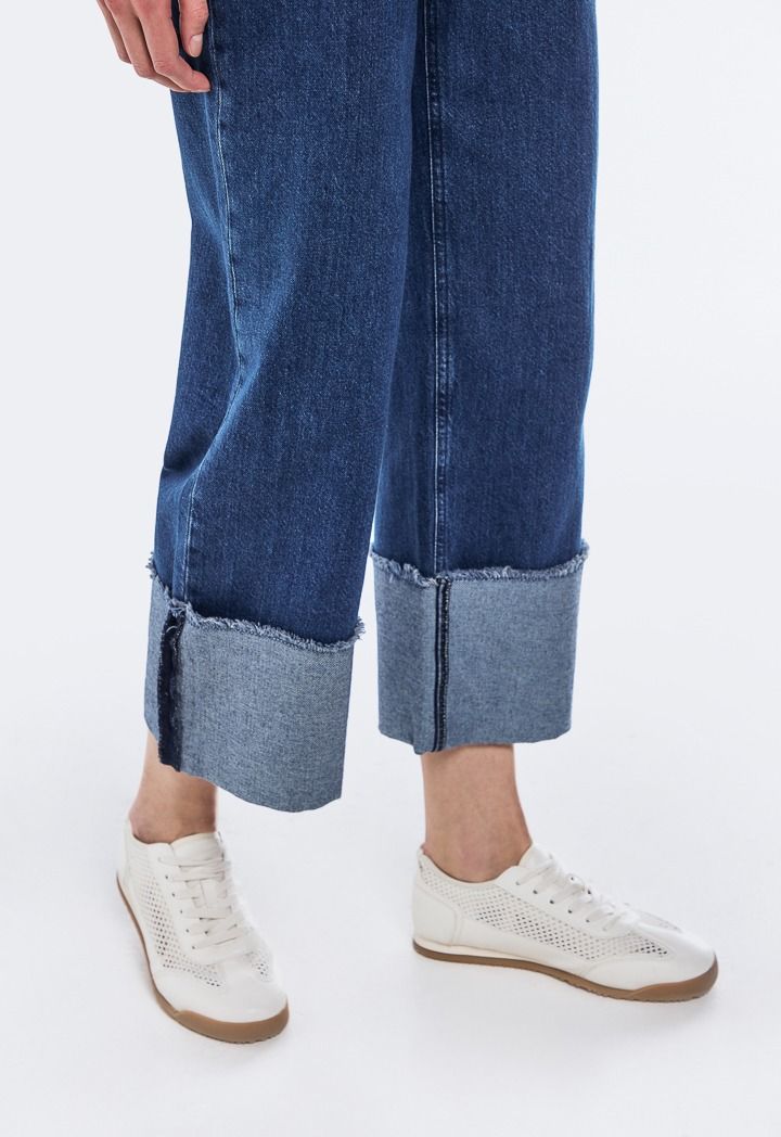 Straight Cut Folded Hem Jeans