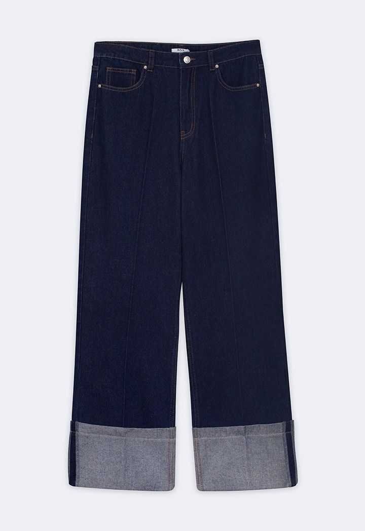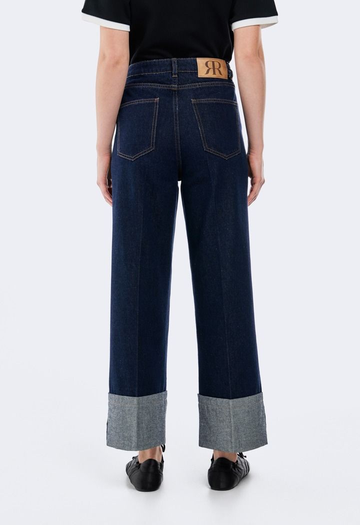 Straight Cut Folded Hem Jeans |