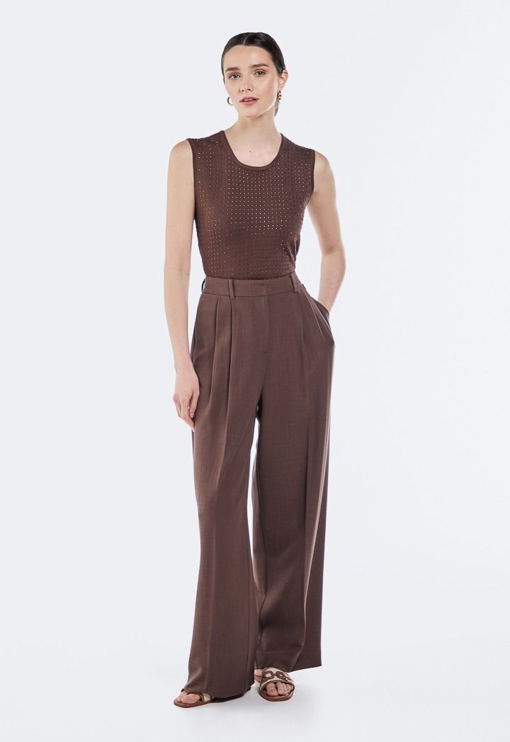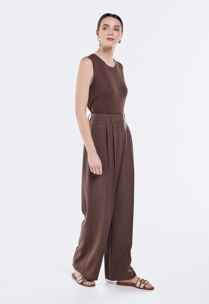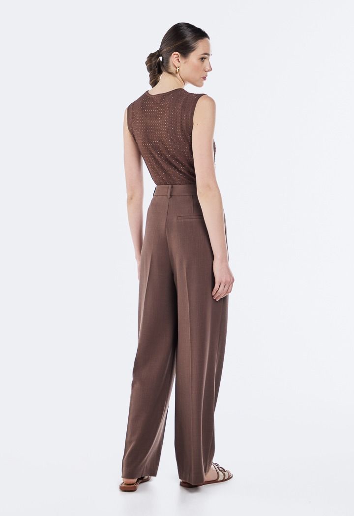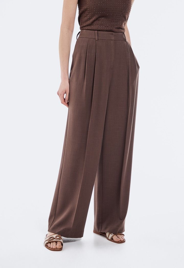 Design: Solid, Wide Leg, High Waist, Side Pockets, Straight Cut, Pleated Waist