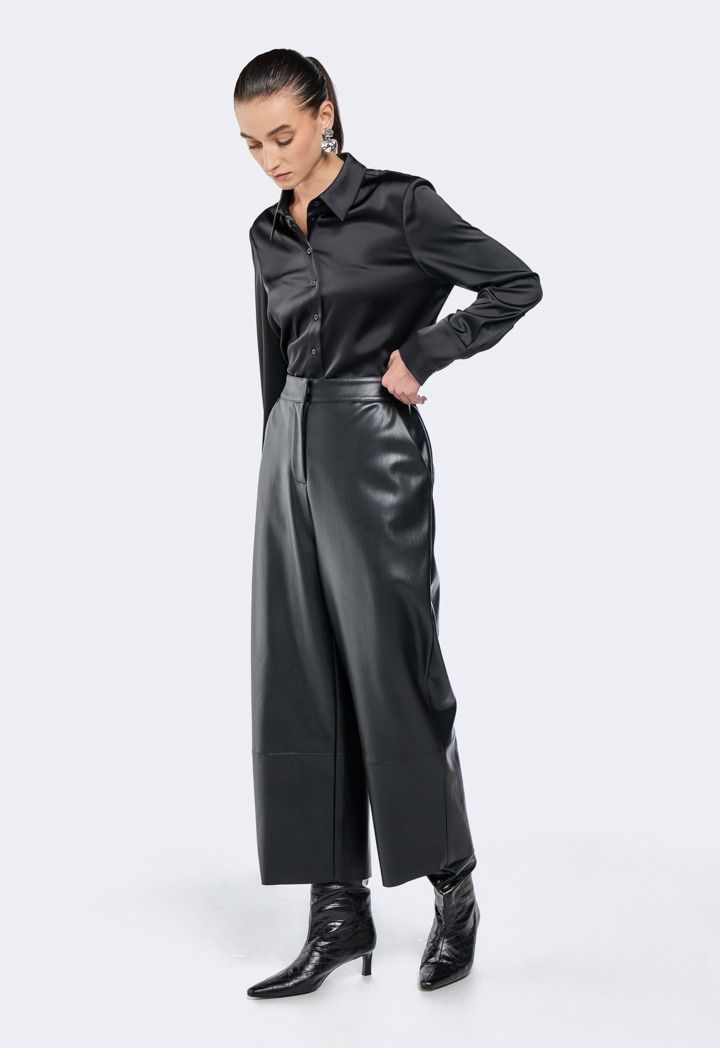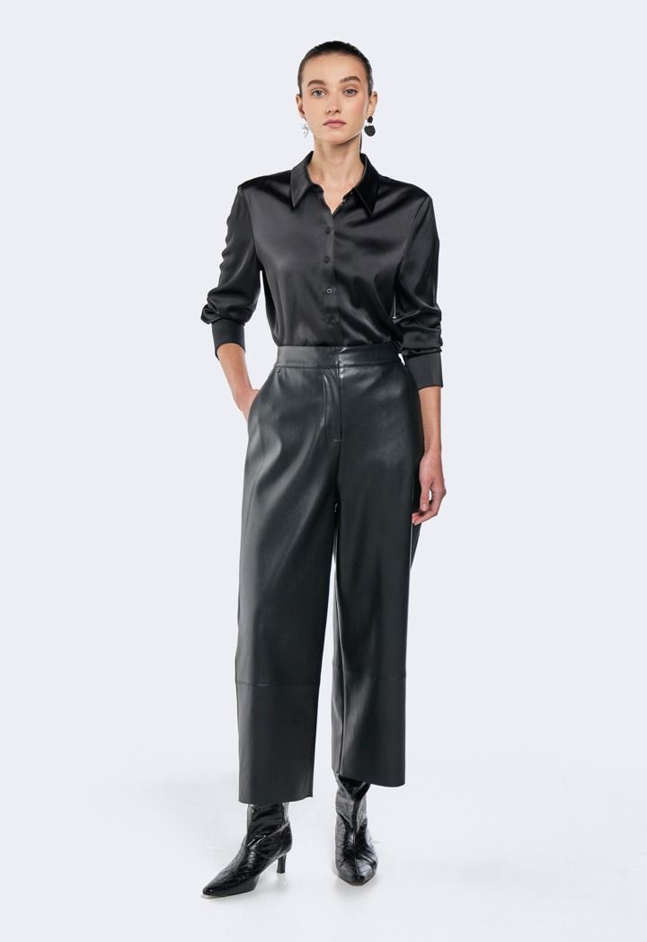 Design: PU Leather, High Waist, Straight Cut, Solid, Side Pockets