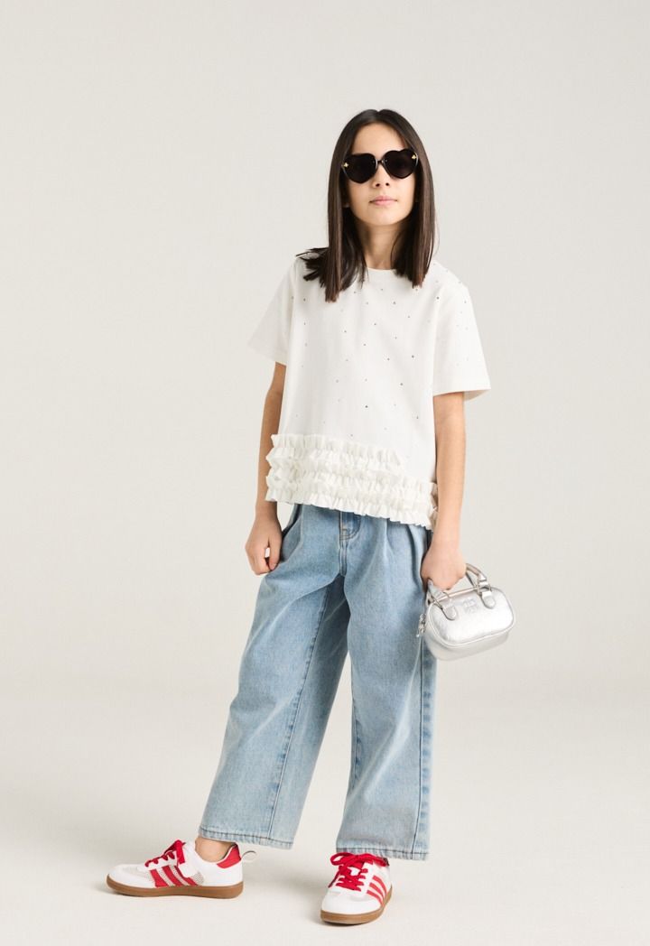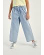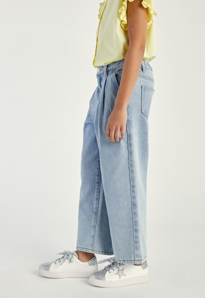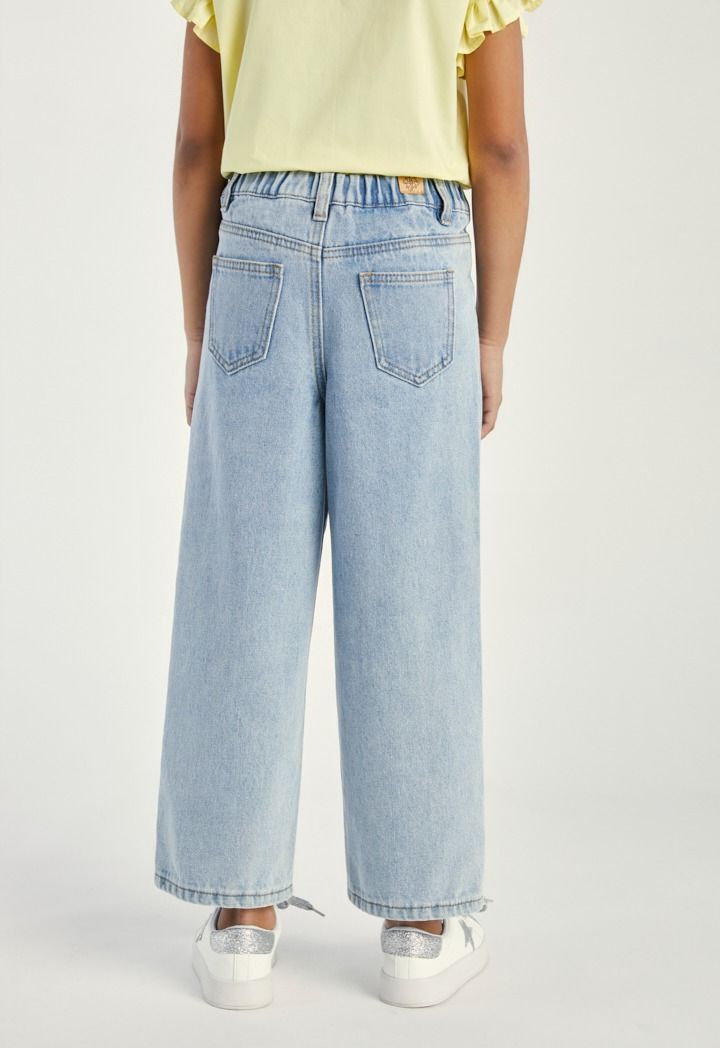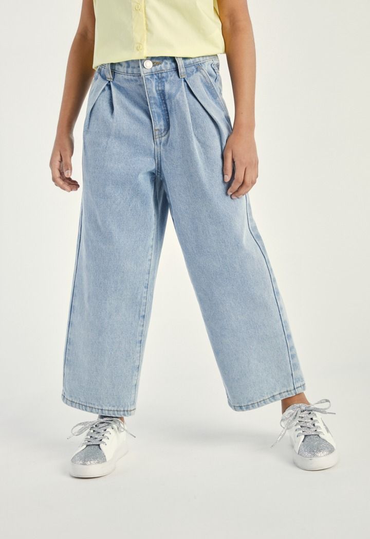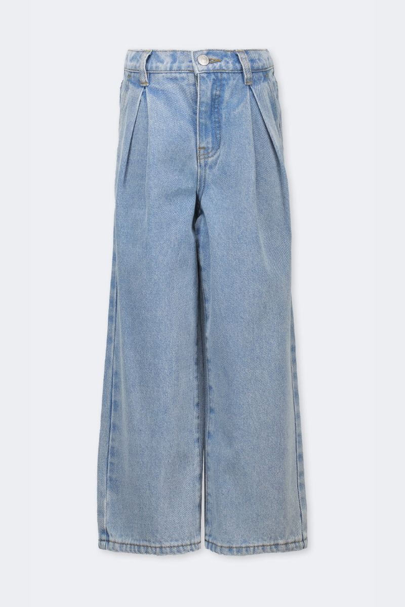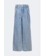 A solid pair of pants made with durable denim featuring a stylish wide leg design.