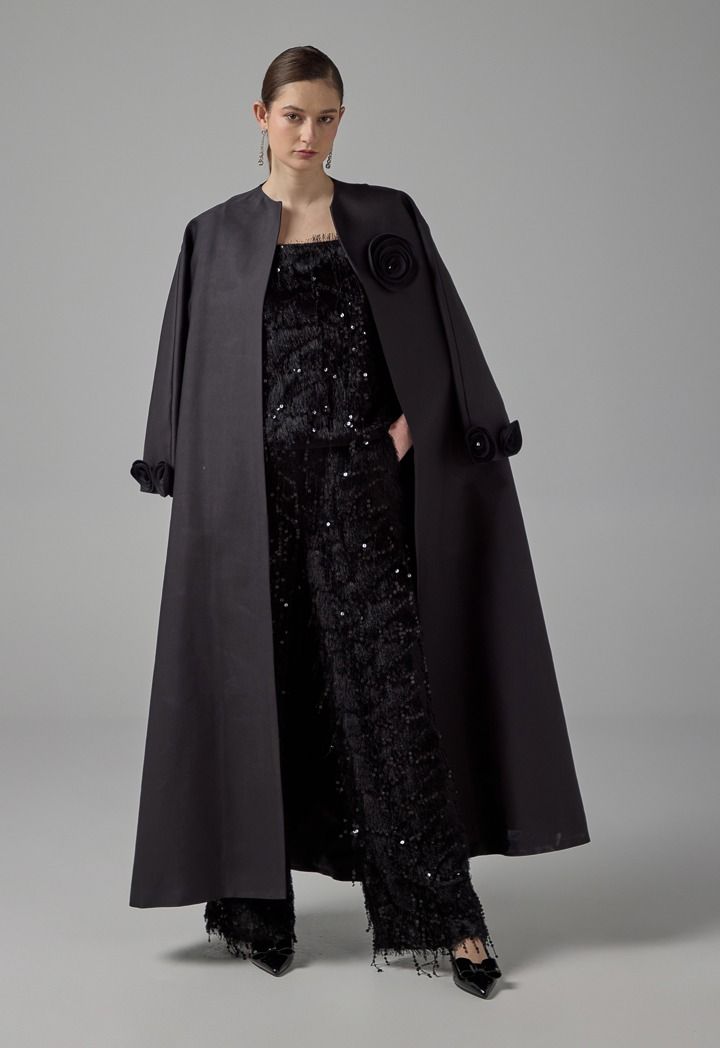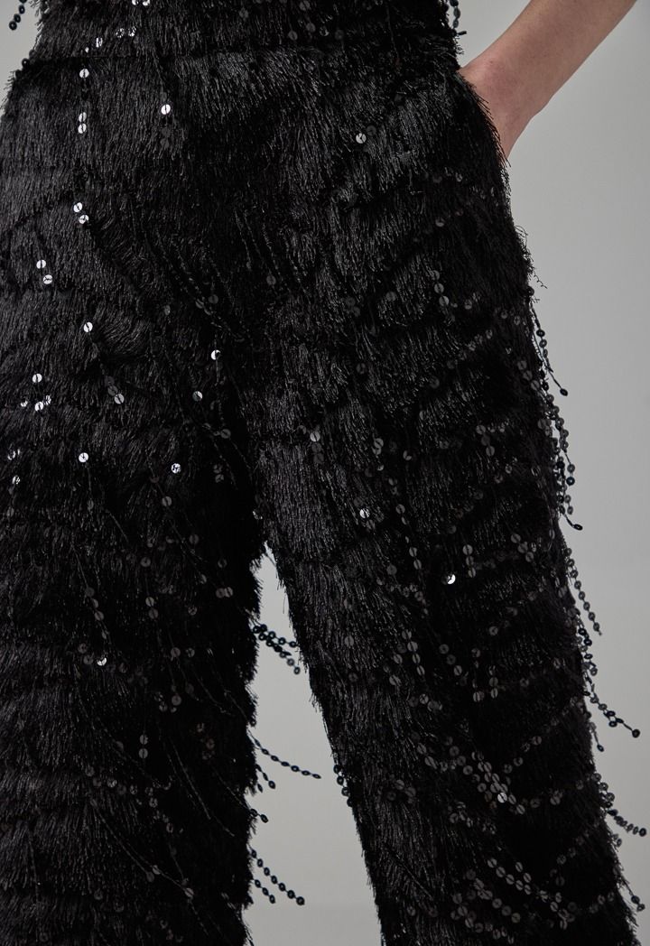Design: Solid, Pockets, Straight Legs Fringe, Sequin, Attached Lining