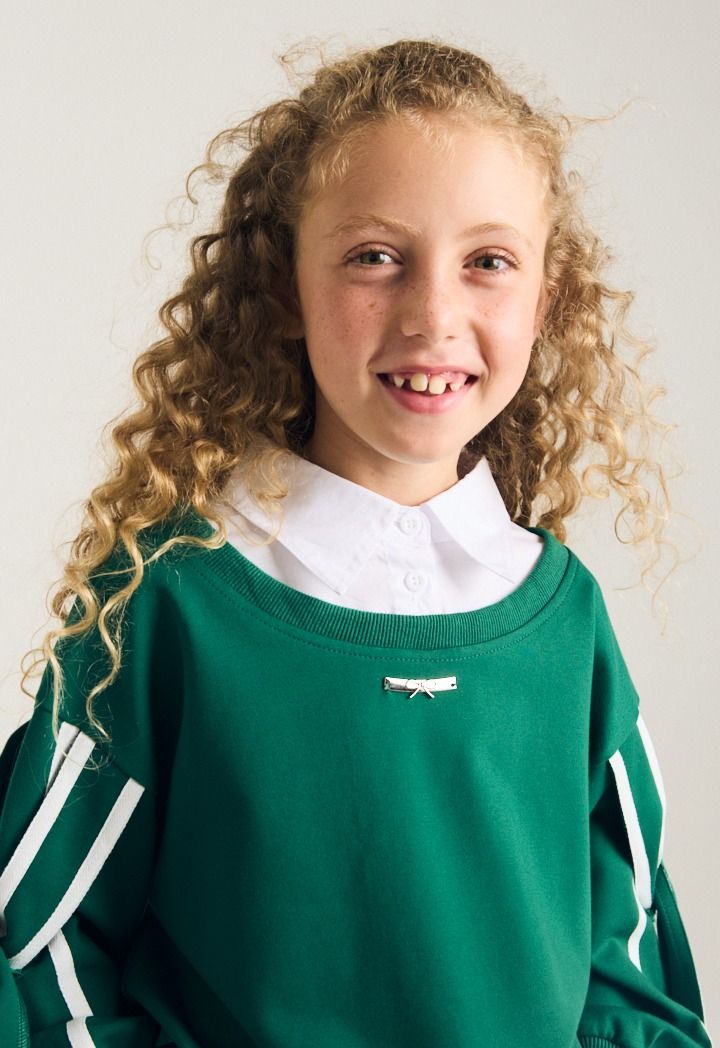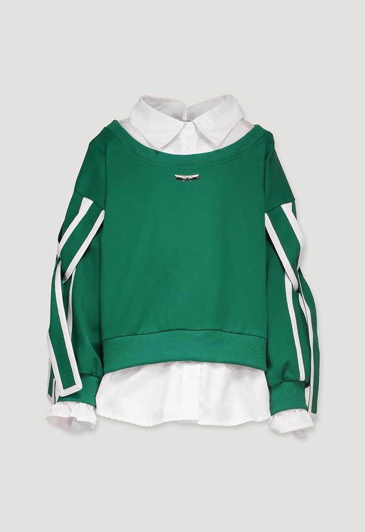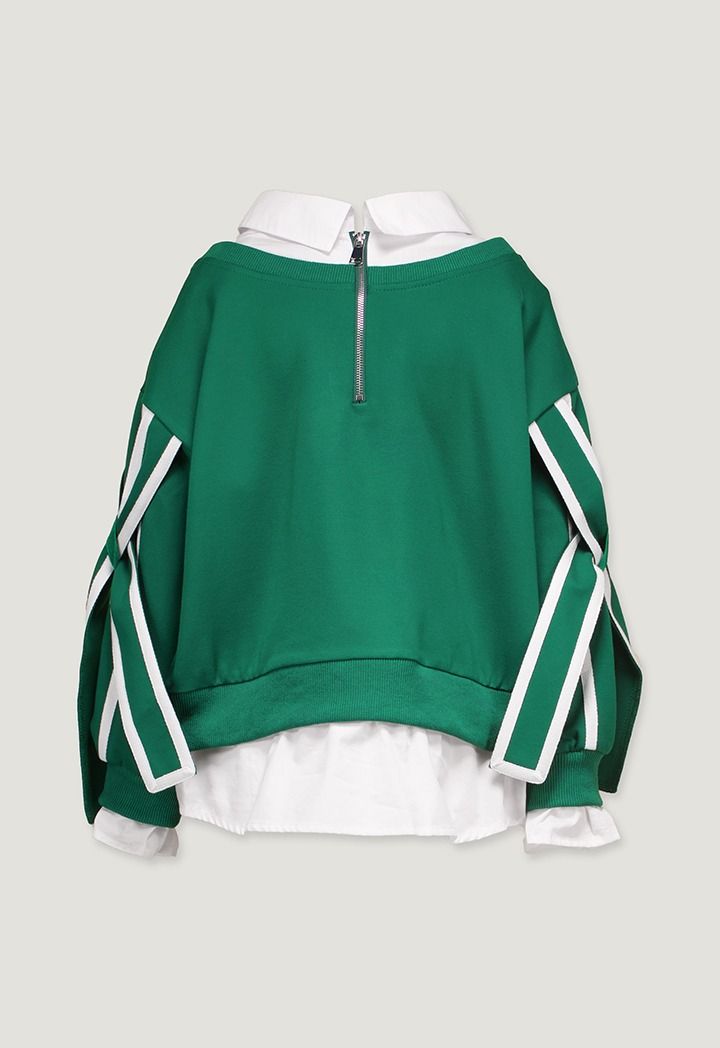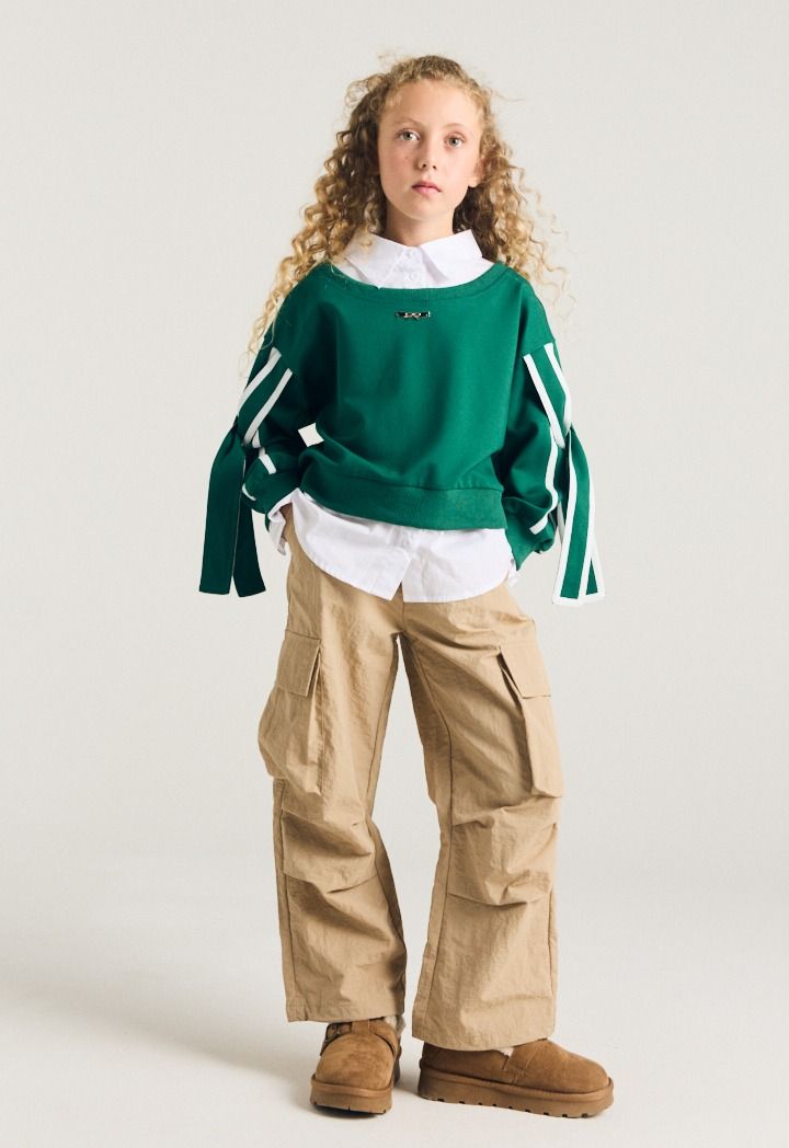 Shirt-style sweater with sleeve straps, trendy, cute, and perfect for everyday wear.