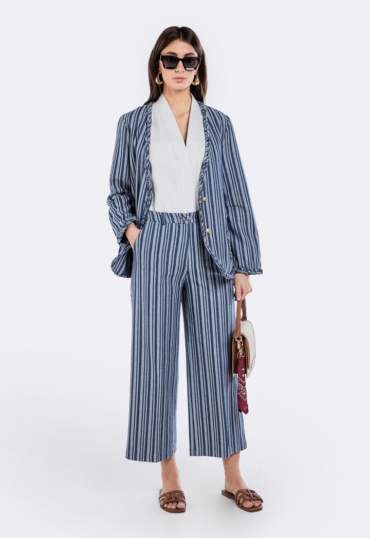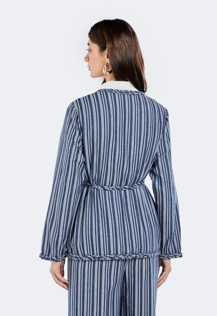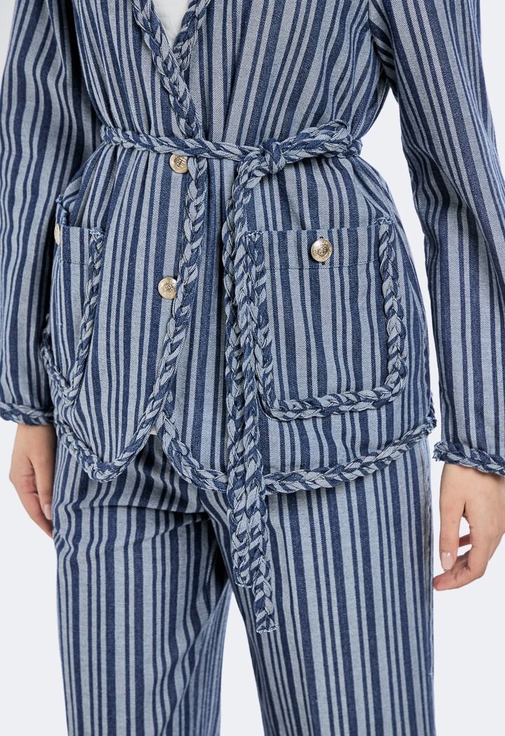 Design: Striped, Braided Belt, Patch Pockets, Braided Hem