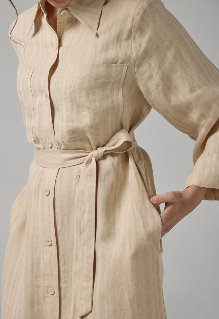 Design : Striped, Front And Side Pockets, Belt, Side Slit At Hem