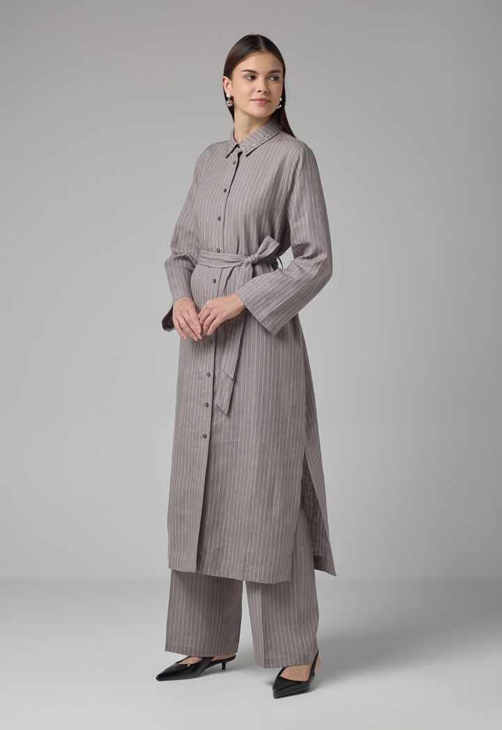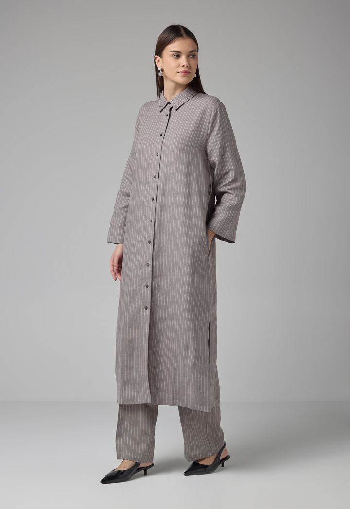 The pattern on this shirt dress defines its character, providing an opportunity to reflect your personal style.