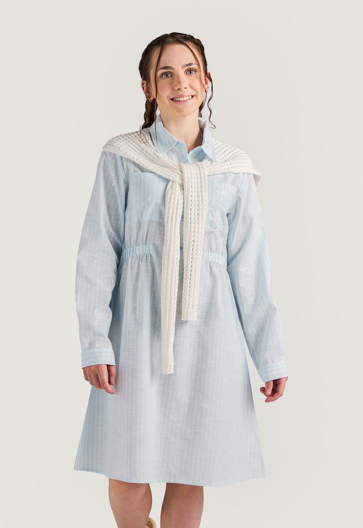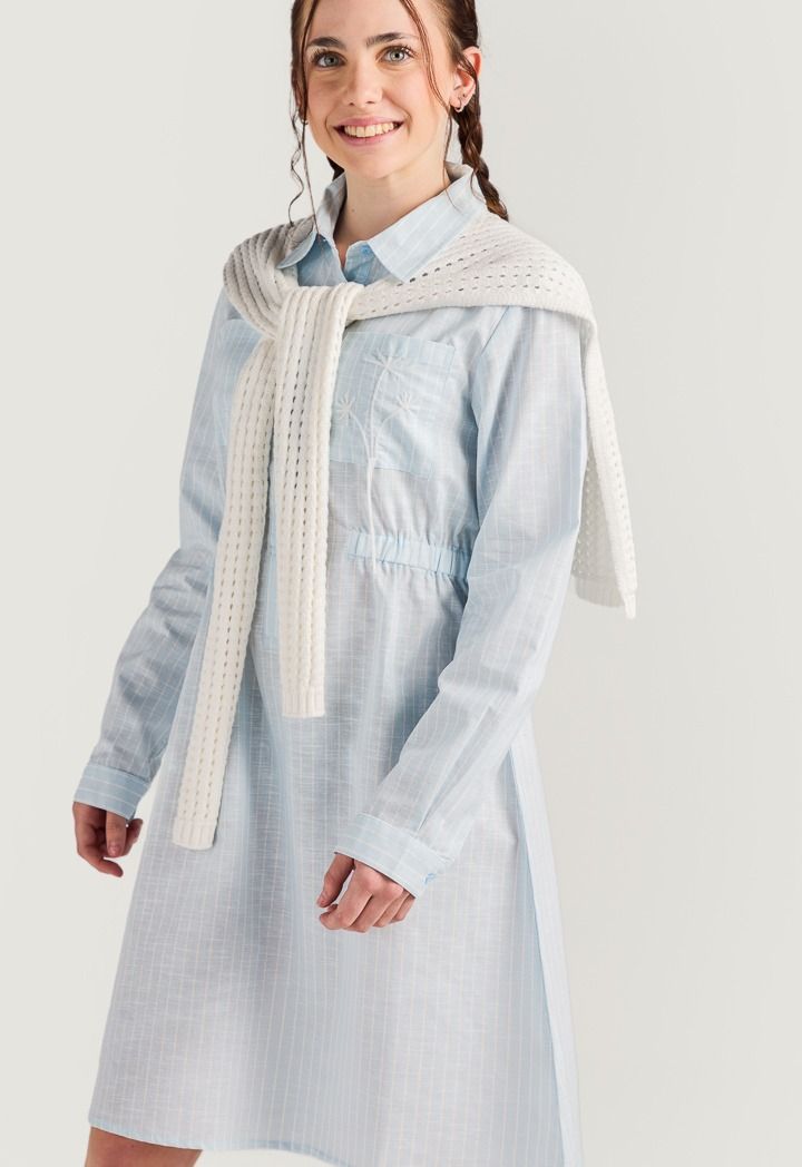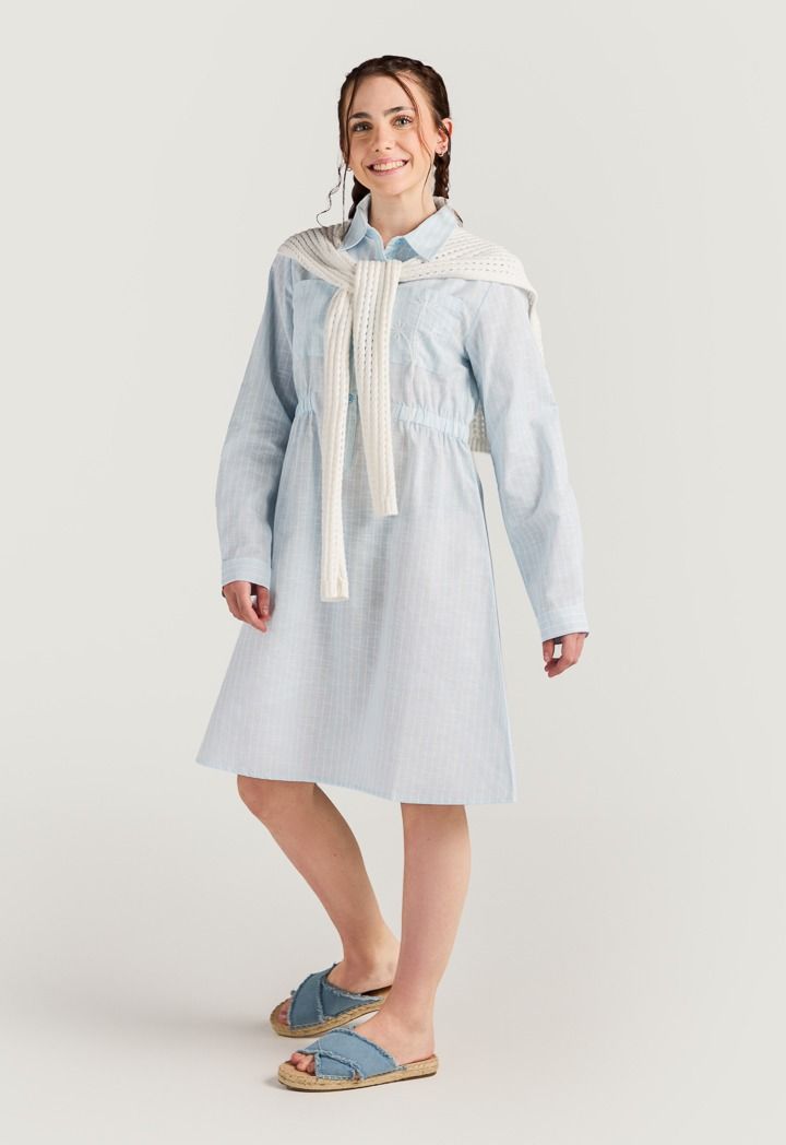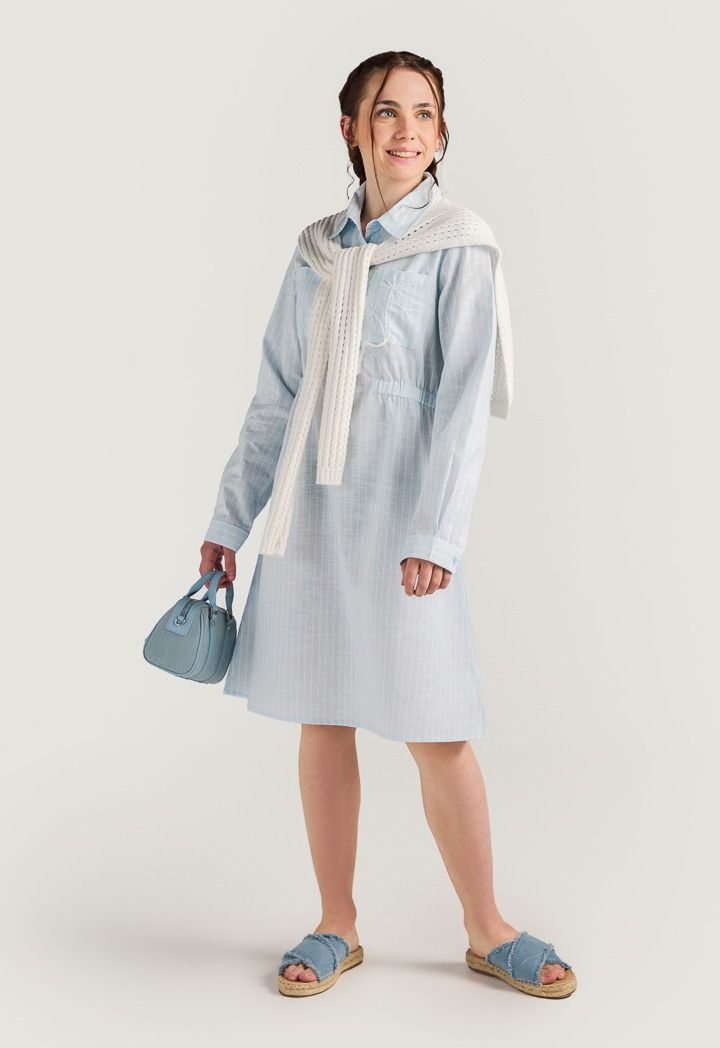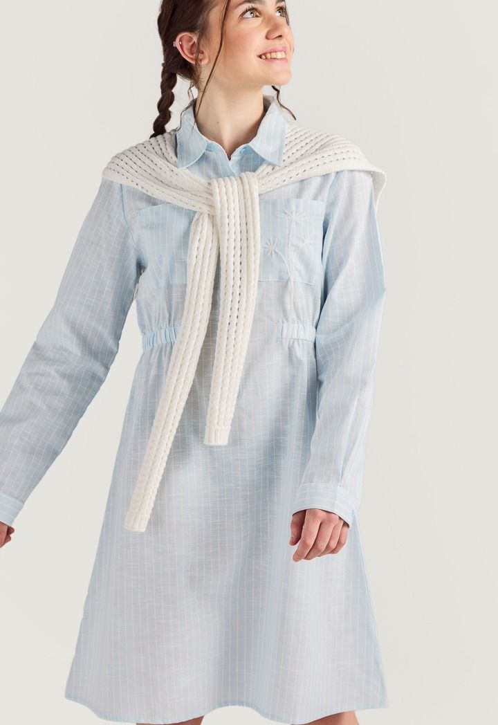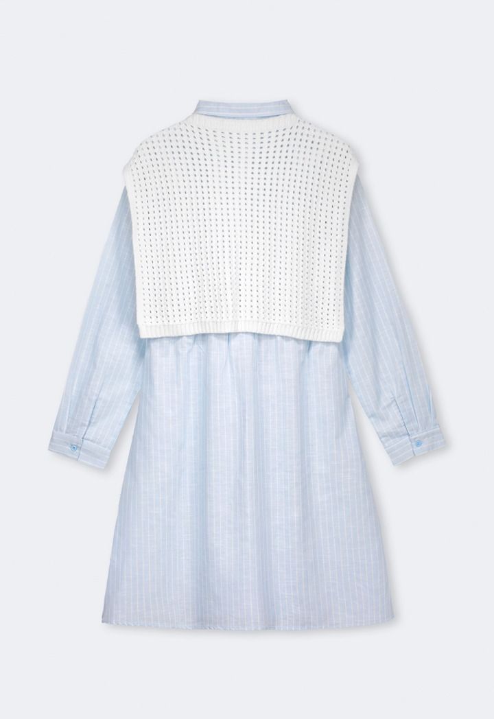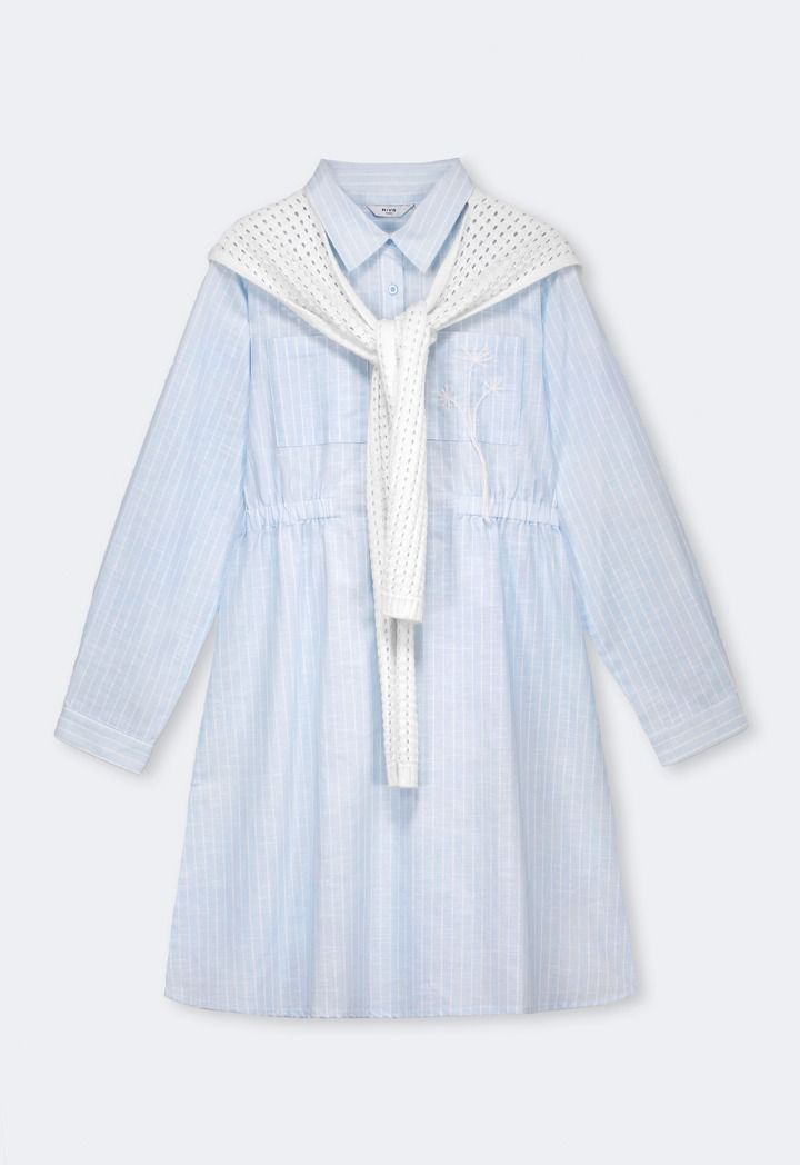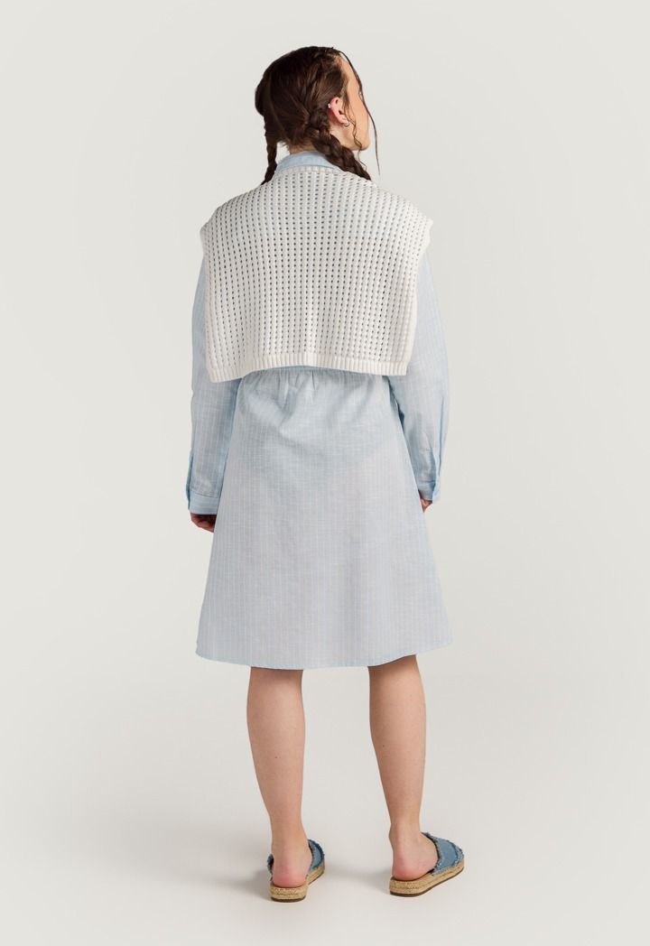 The perfect summer dress combo, featuring a striped shirt dress and a detachable crochet back.