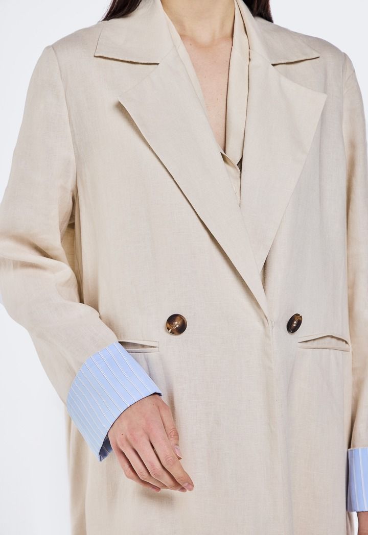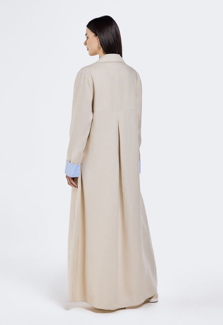 Striped Cuff Linen Abaya |