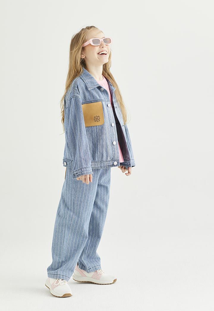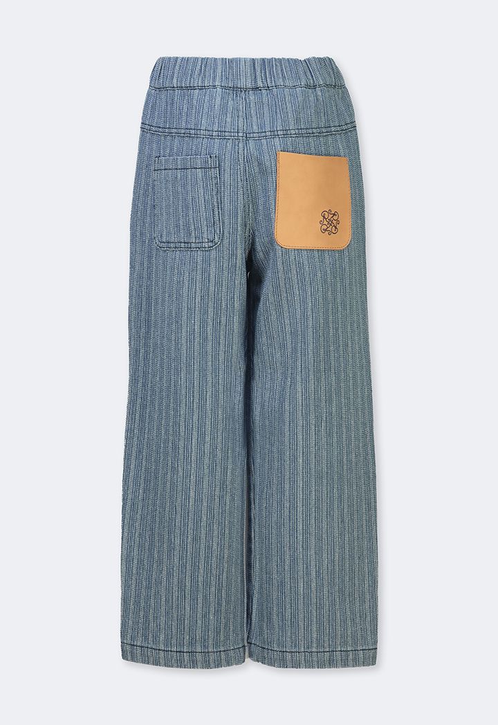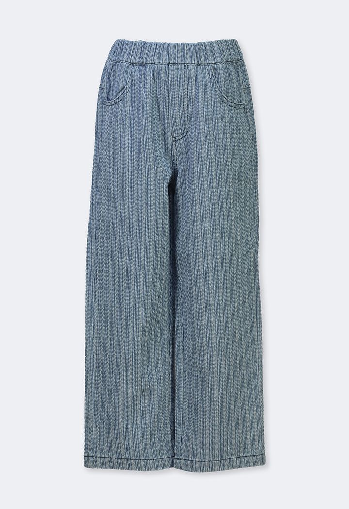 A striped pair that features a straight leg design and an elastic waist for closure.