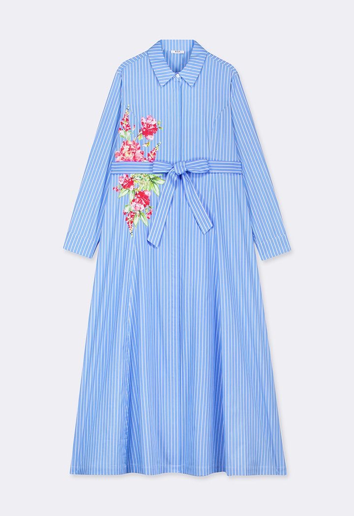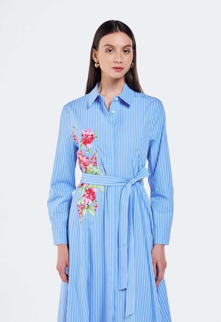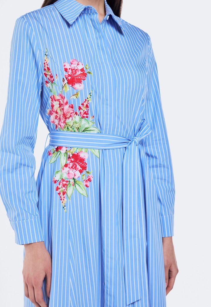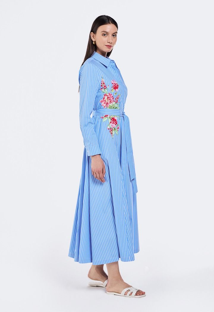 Design: Floral Printed Motif, Flared, Striped, Belted