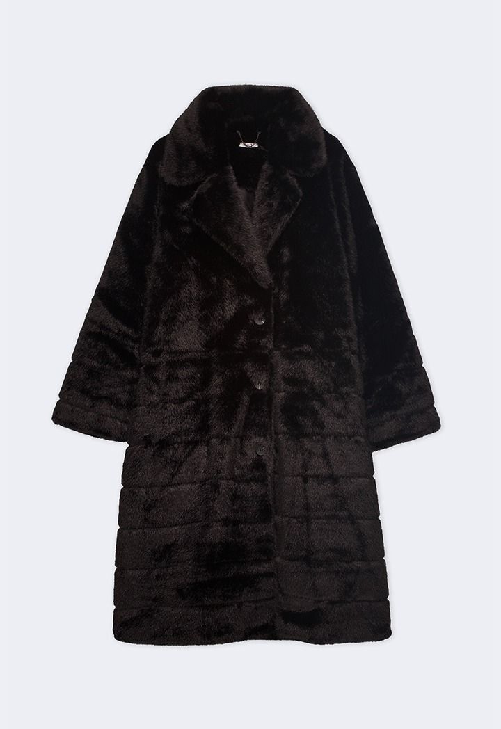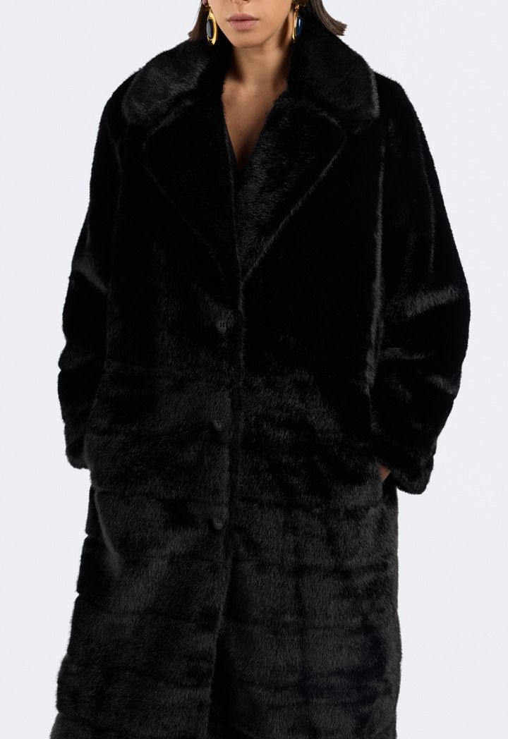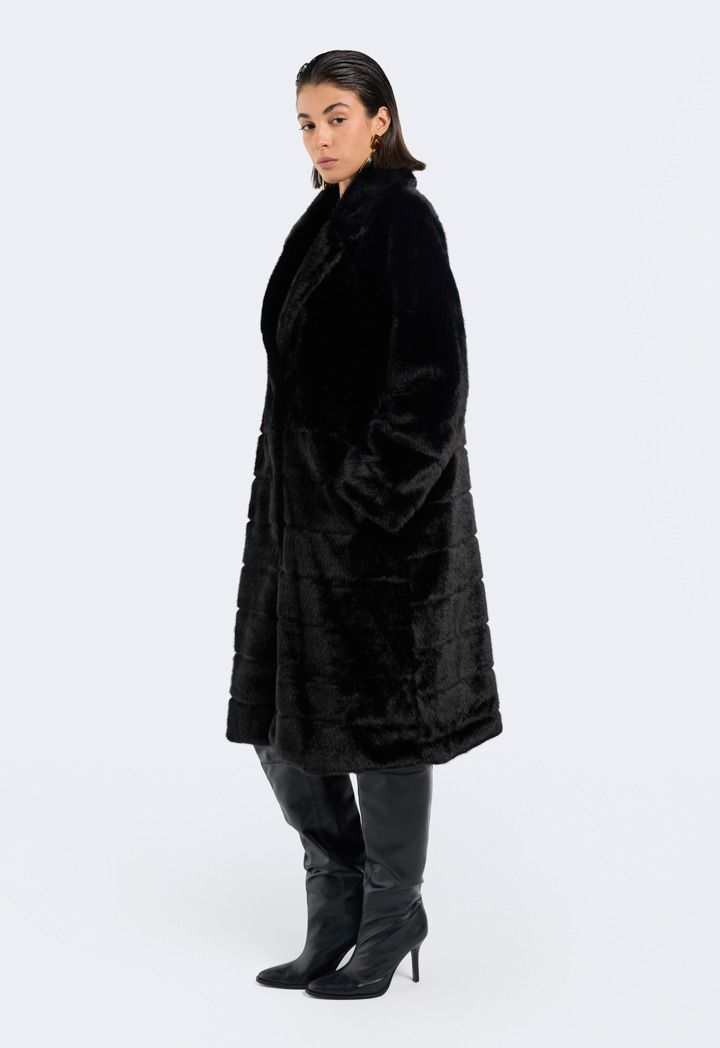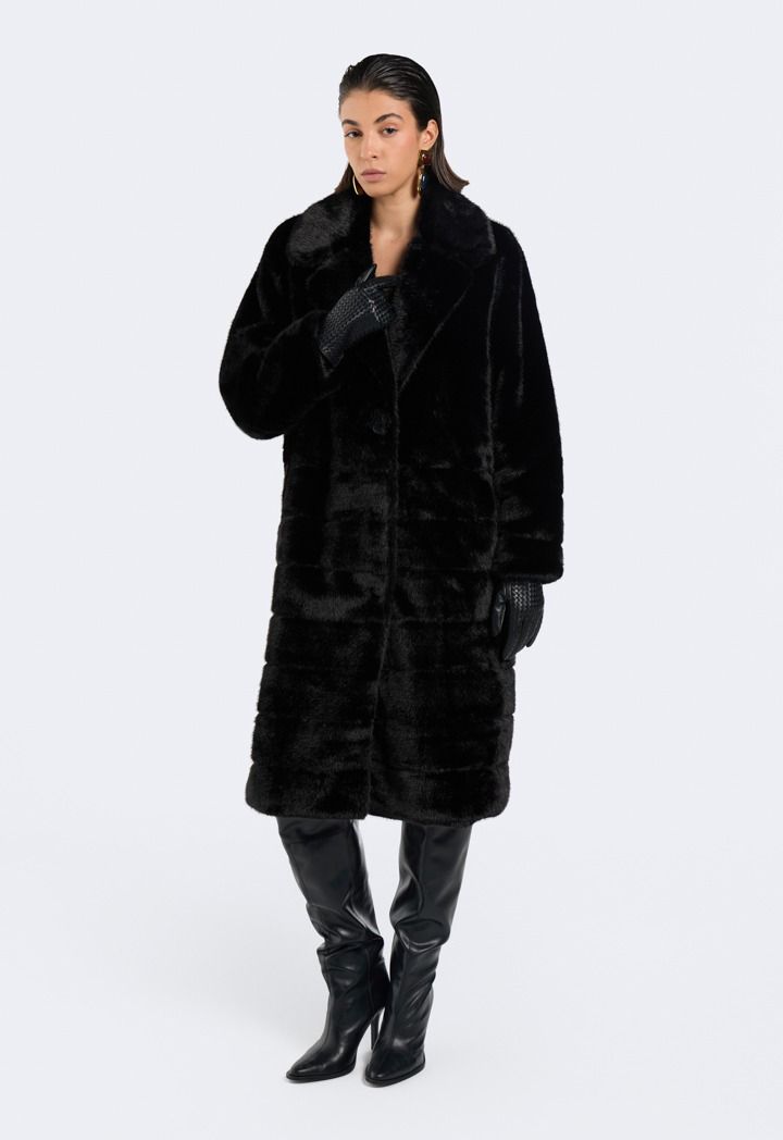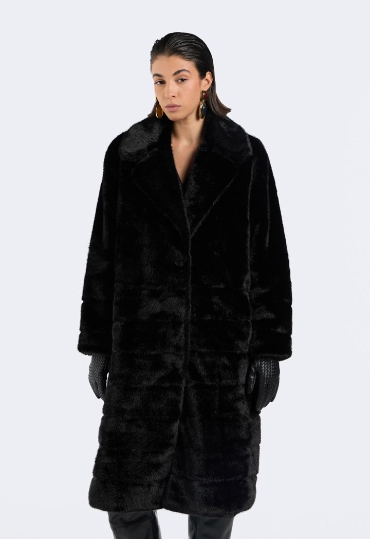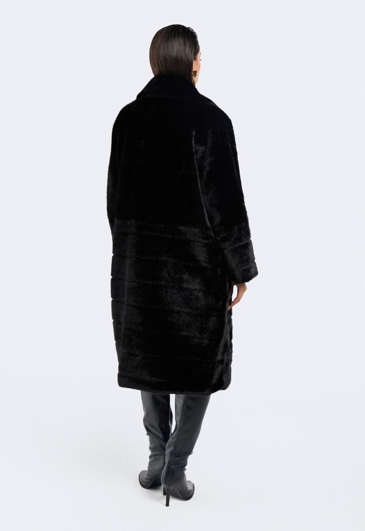A solid Coat that features a Faux Fur design with a striped pattern.