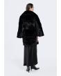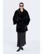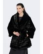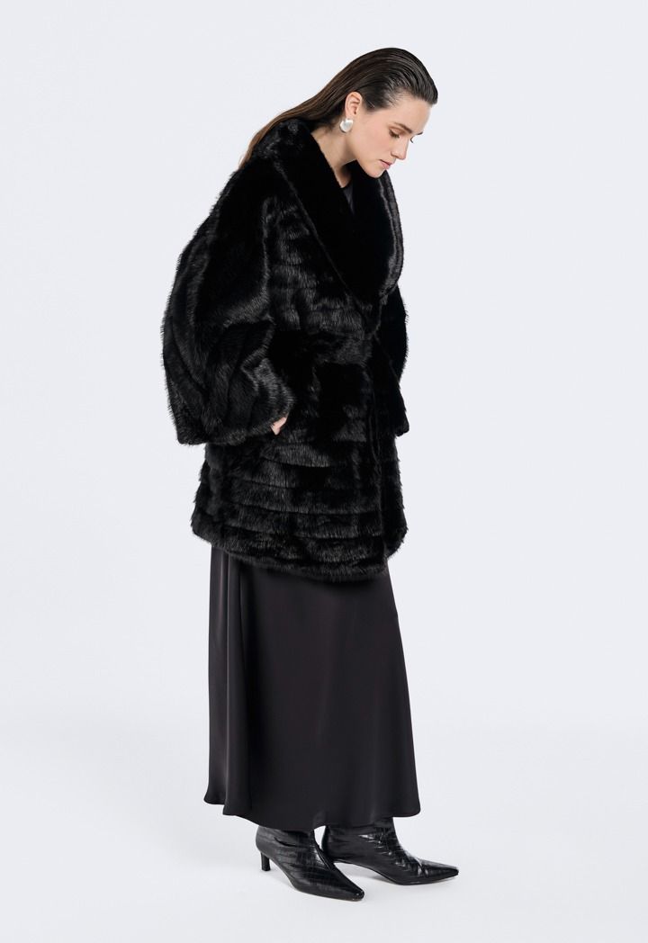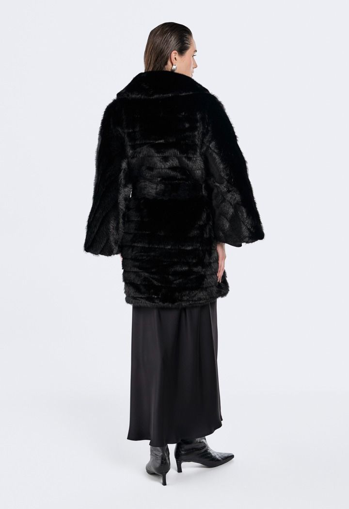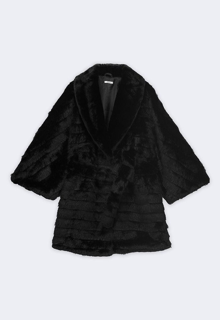 A solid Jacket that features a Faux Fur design with a striped pattern.