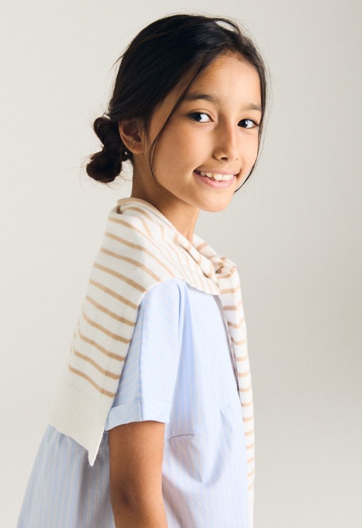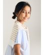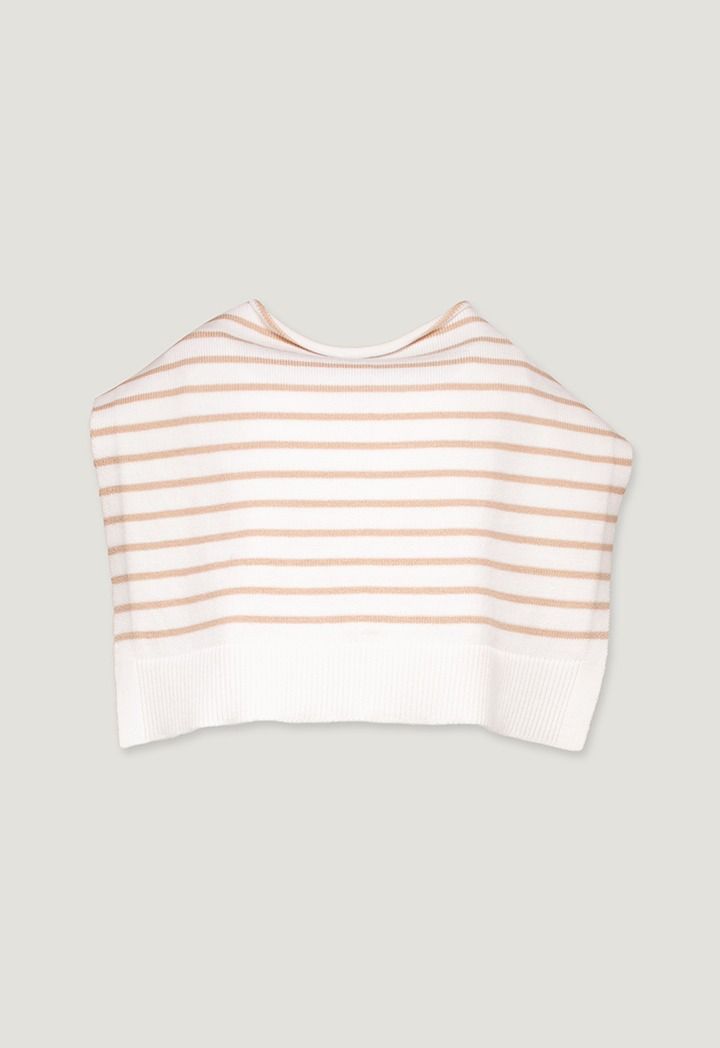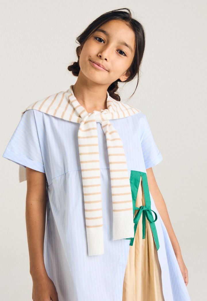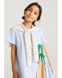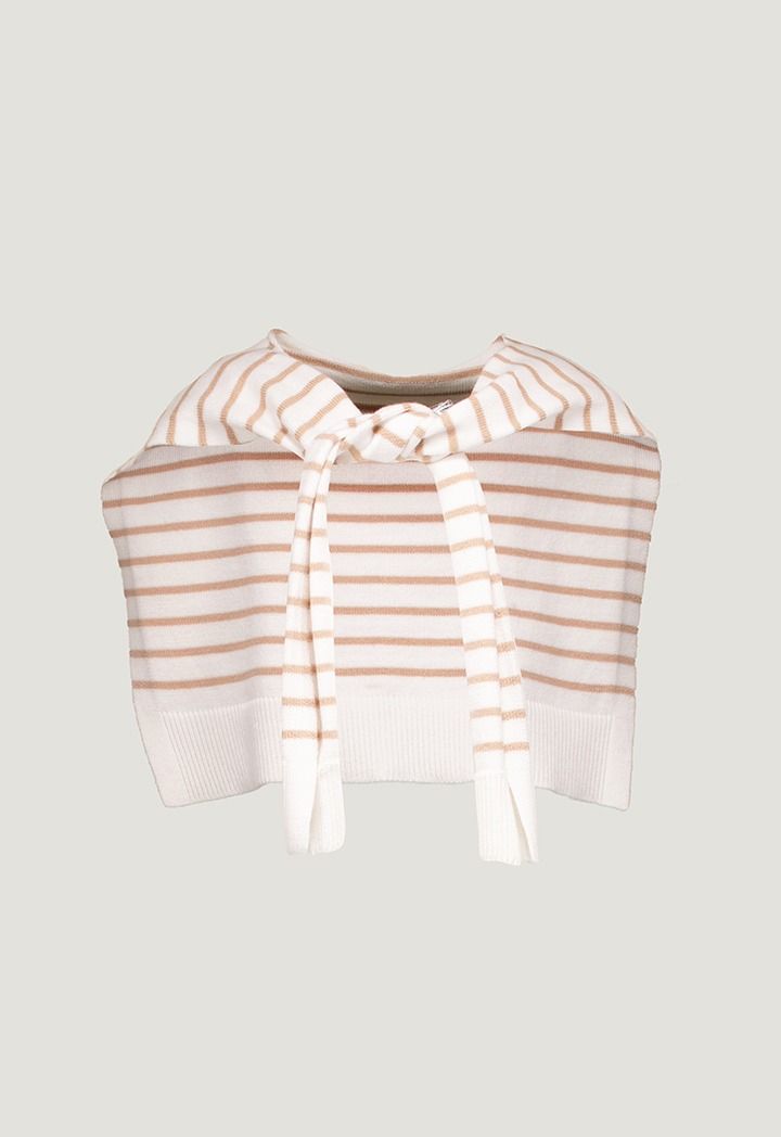 A Contrast knitted scarf that features a striped design and a tie neck.