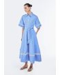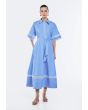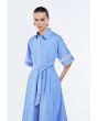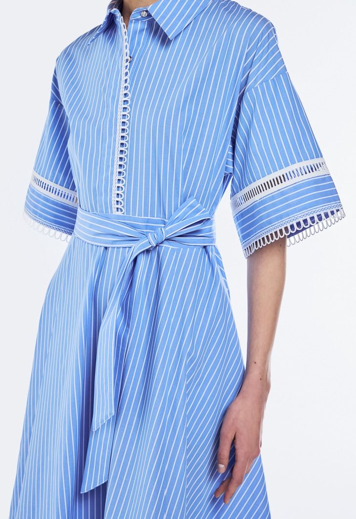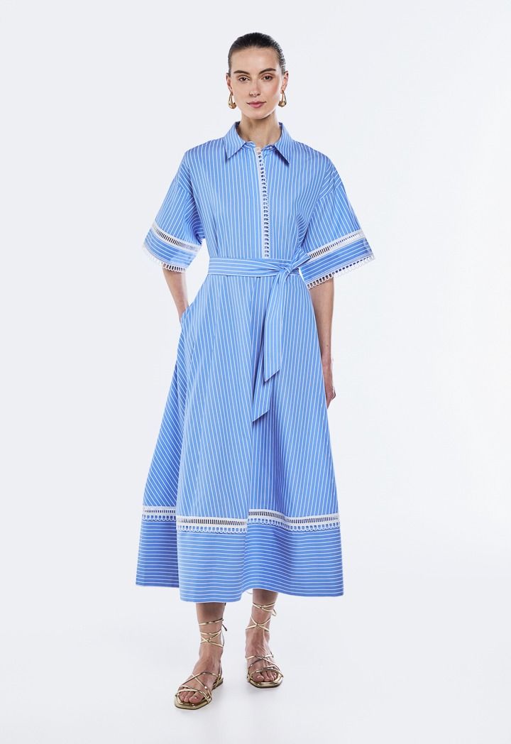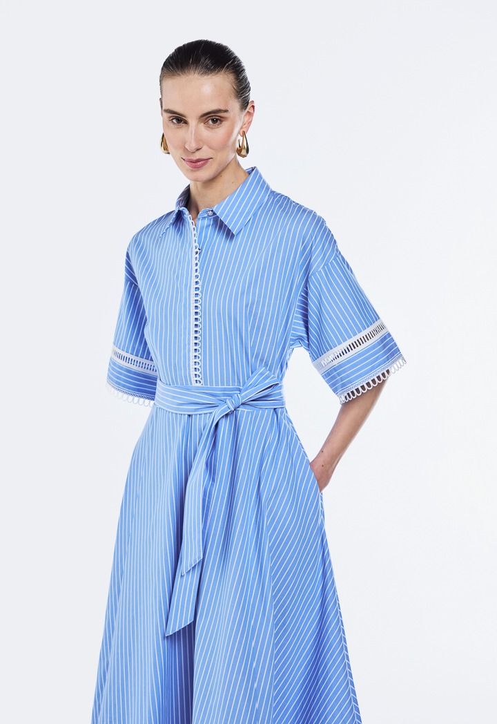 This chic dress is an easy, breezy choice for warm days. It's cinched at the waist with a tie-up belt. Lace trims along the hem elevate your look from simple to chic.