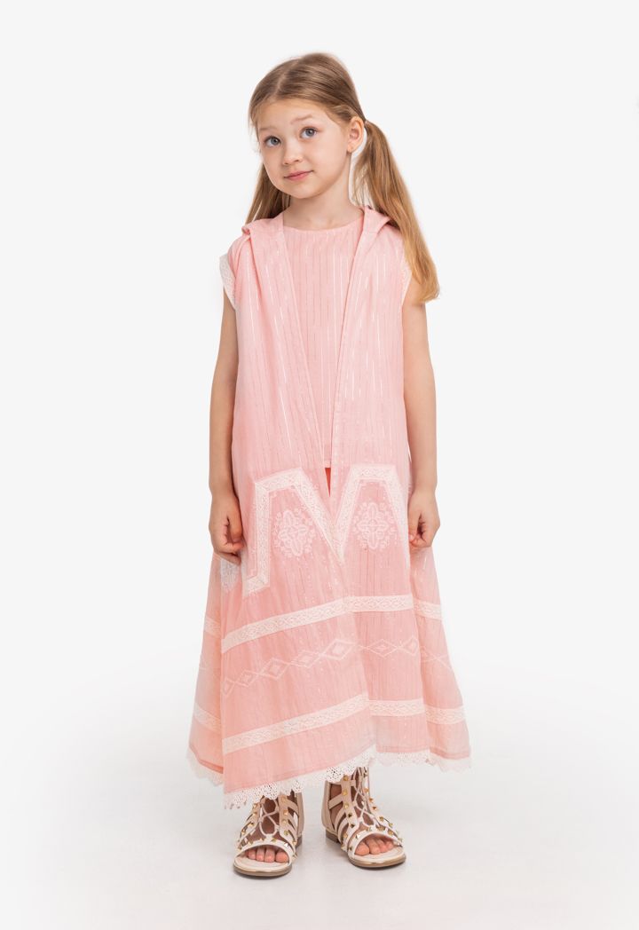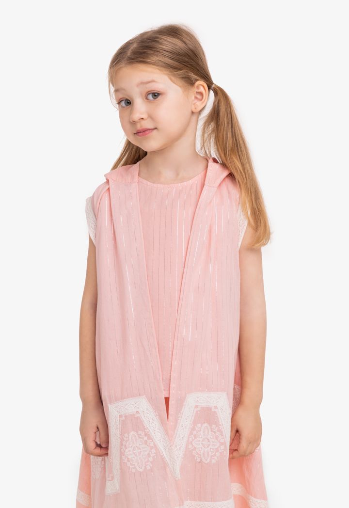 This Classy Sets Features A Striped Blouse and Short. A Hooded Embroidered Abaya With Sleeveless cut to enhance your girl look.