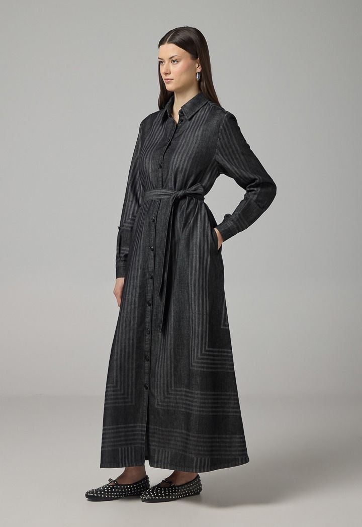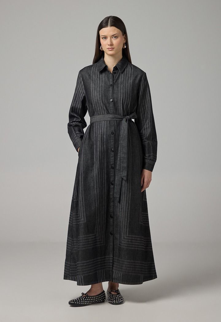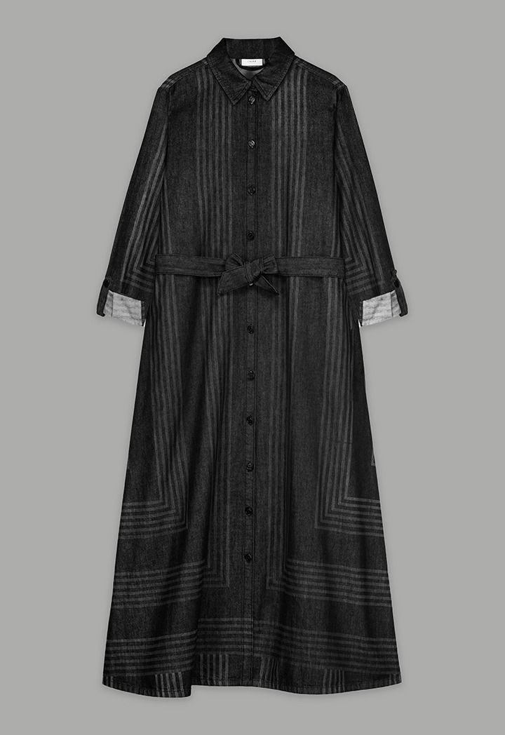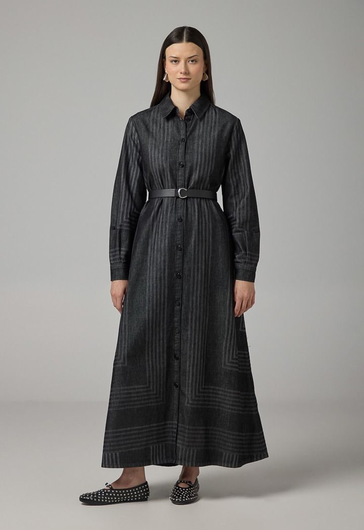 Striped Long Sleeve Denim Shirt Dress |