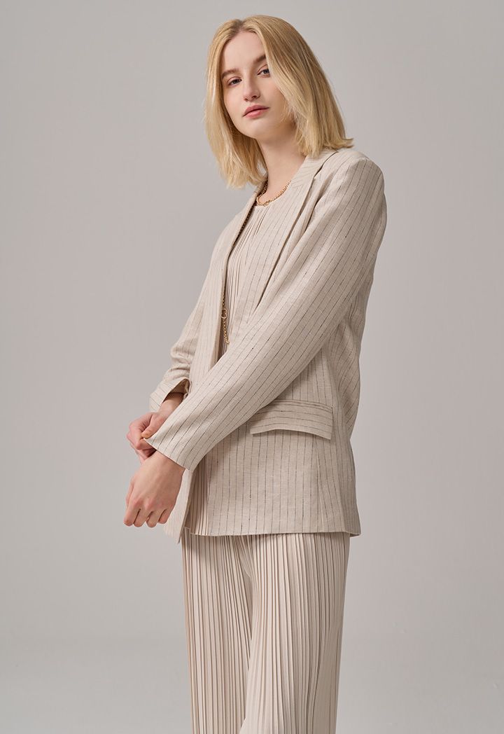 Striped Long Sleeve Linen Blazer |