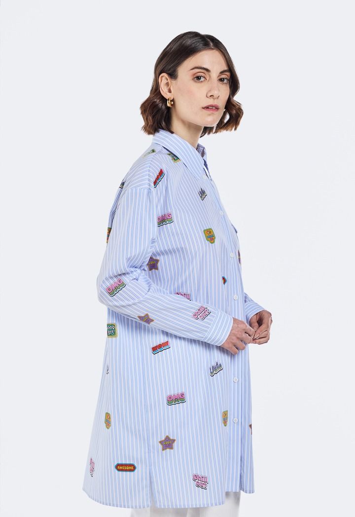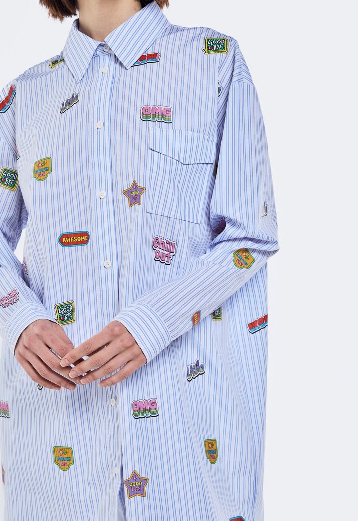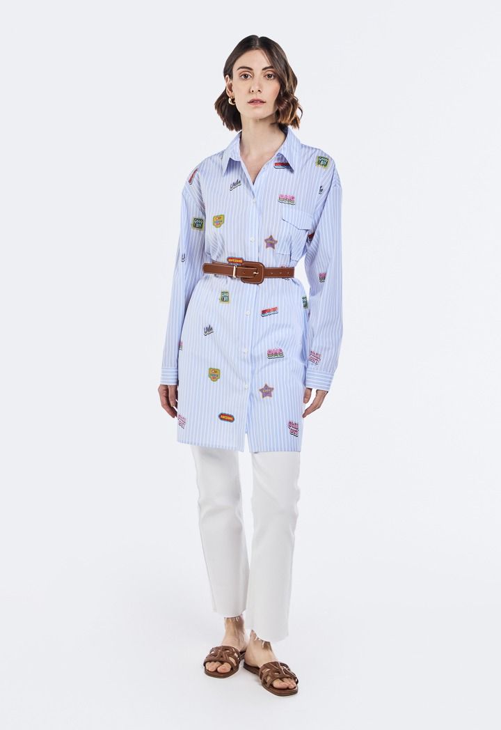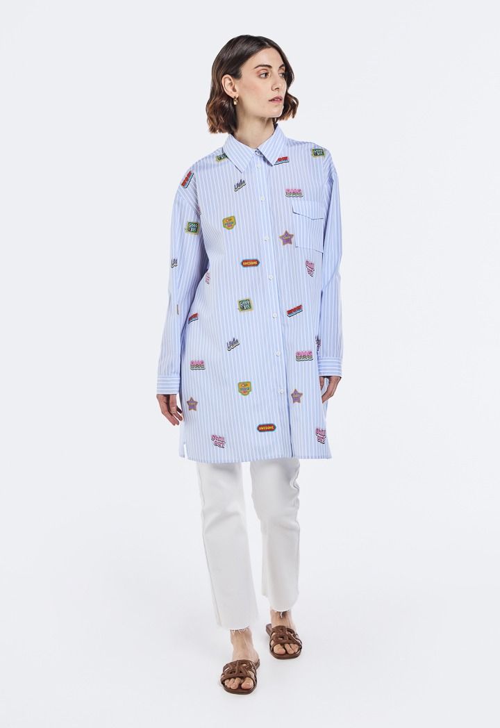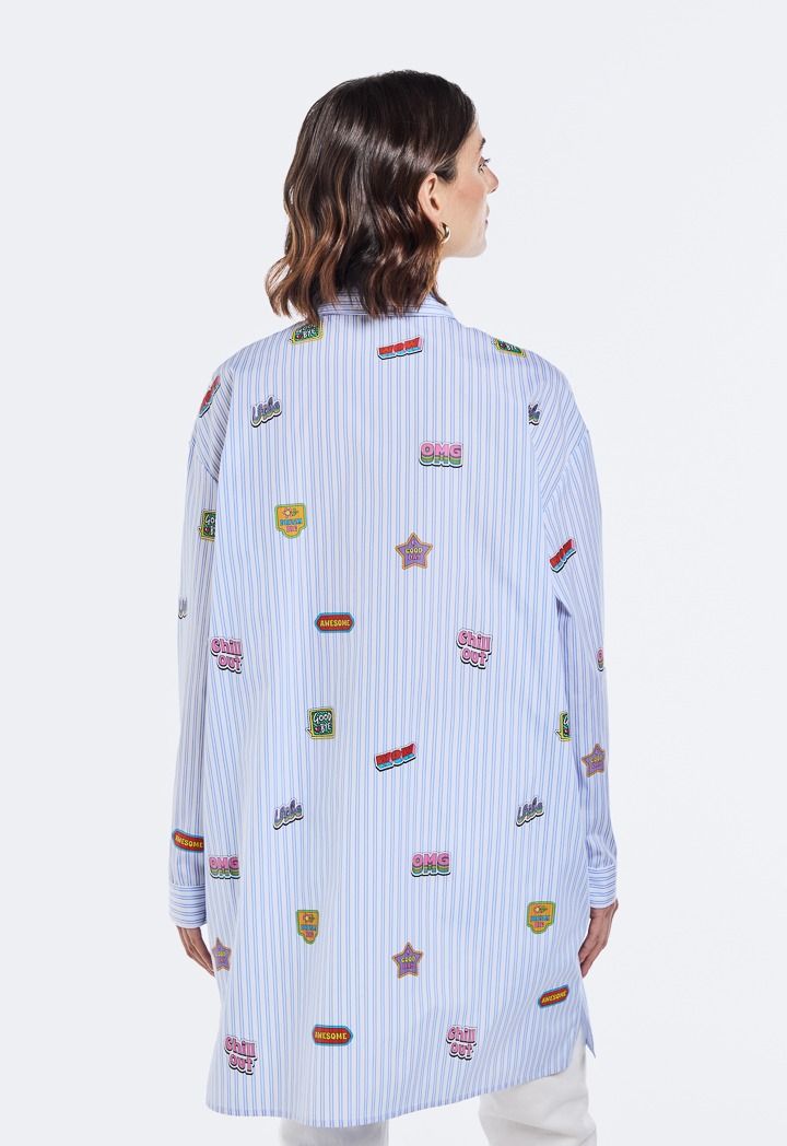 Design: Striped, Patch Embellished, Drop Shoulders, Flap Pockets