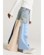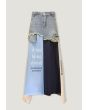 Striped Printed Hems Denim Skirt |