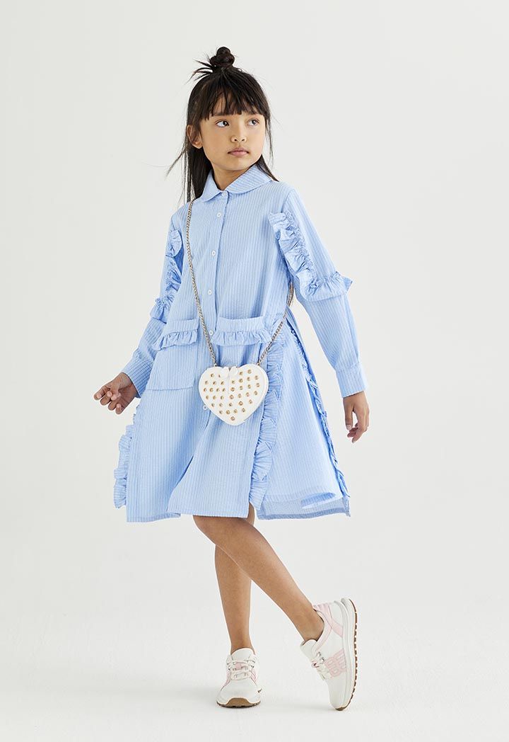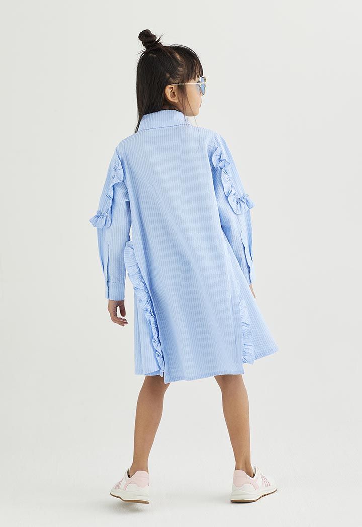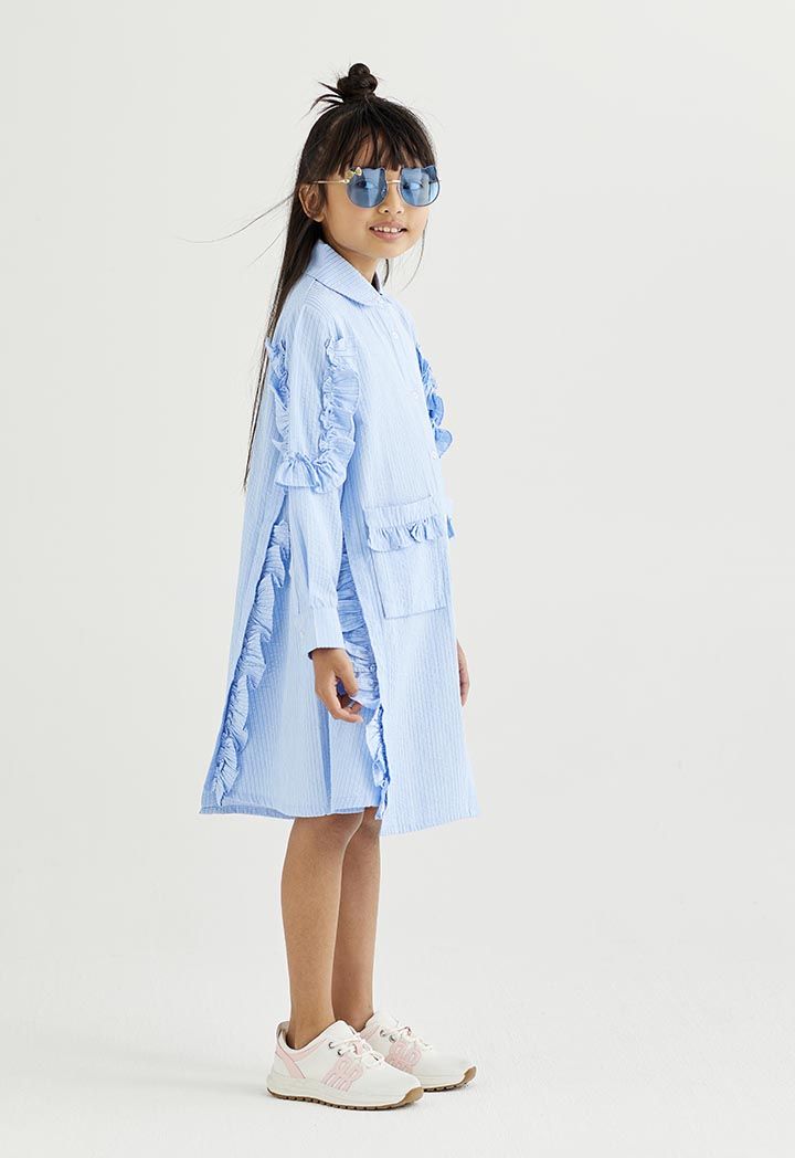 A unique choice for your girl, the unique details of this striped and ruffled design dress will make your girl special.