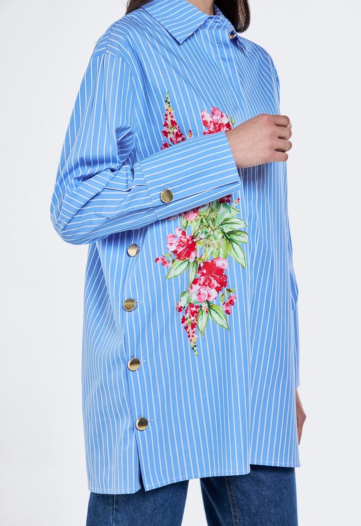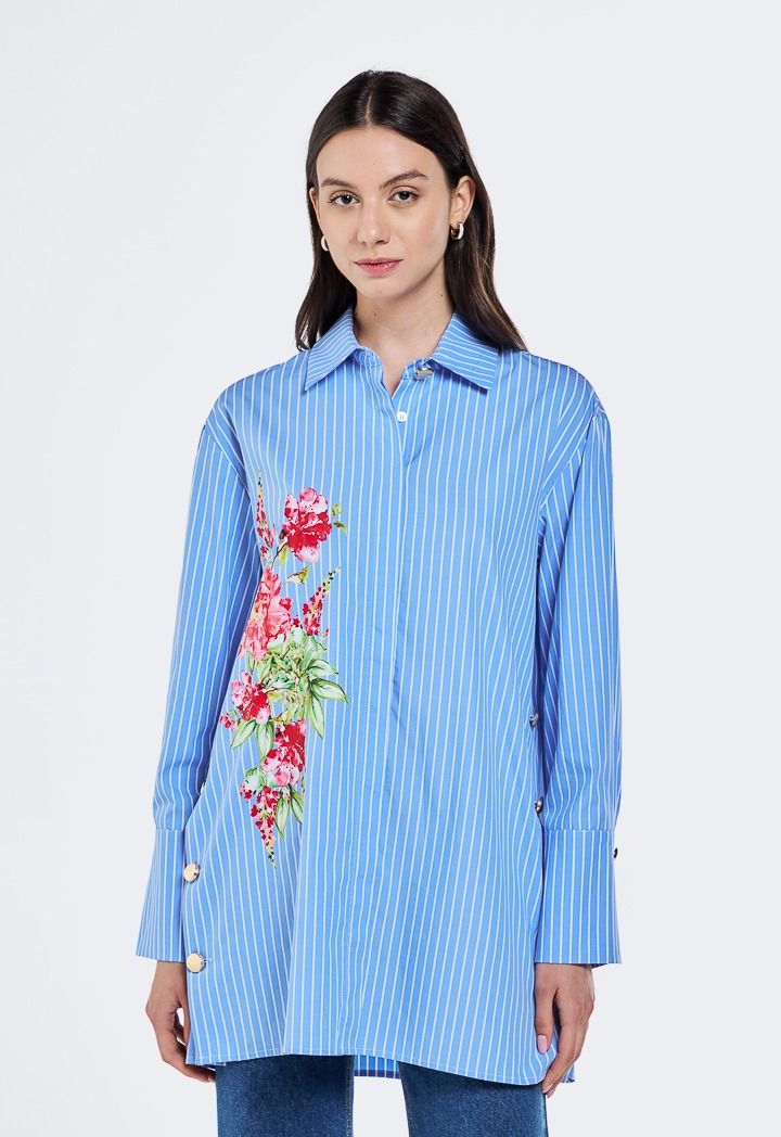 Design: Floral Printed Motif, Side Buttons Embellished, Striped