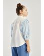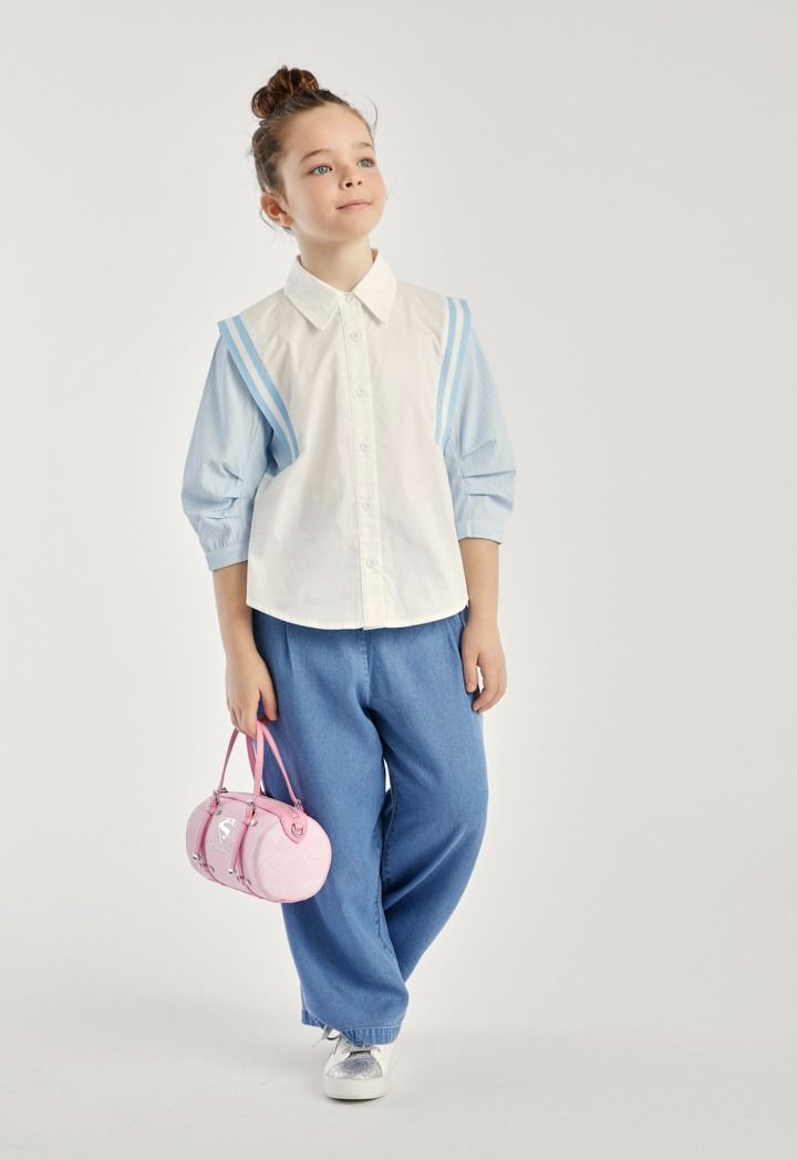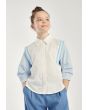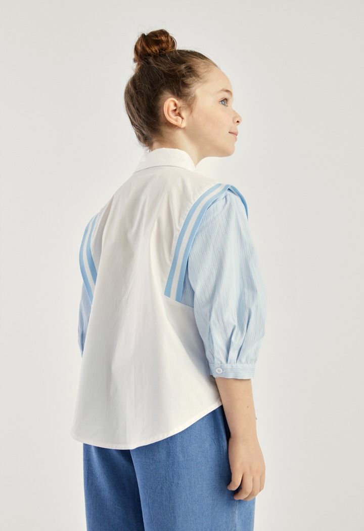 A shirt with striped sleeves, offering a stylish and modern look with a touch of casual elegance.