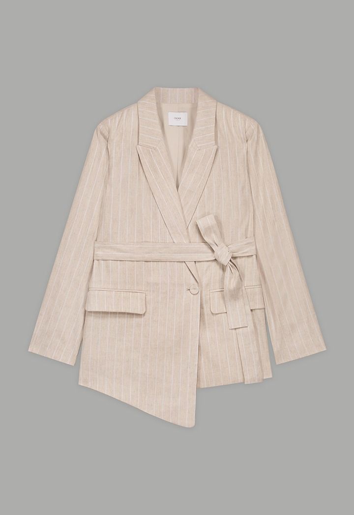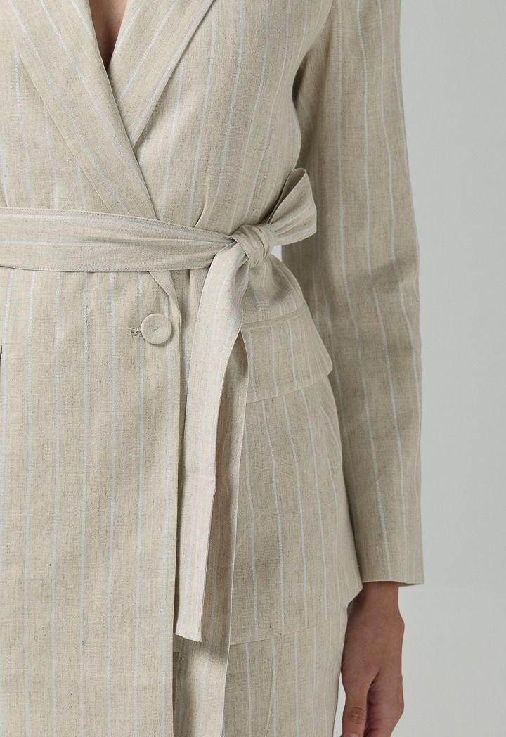 Design: Striped, Front Flap Pockets, Attached Lining, Belt, Lurex, Contrast, Double Breasted, Asymmetrical