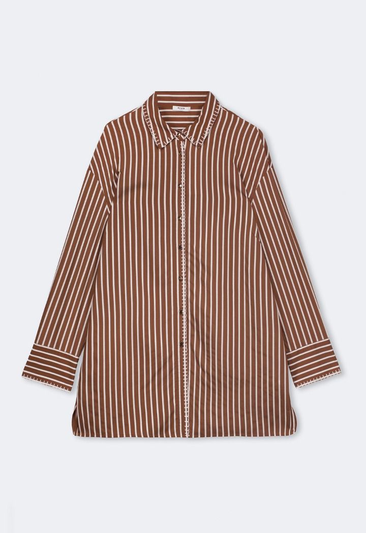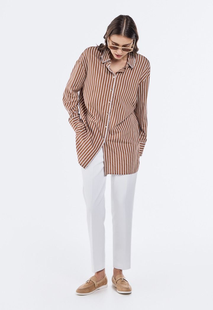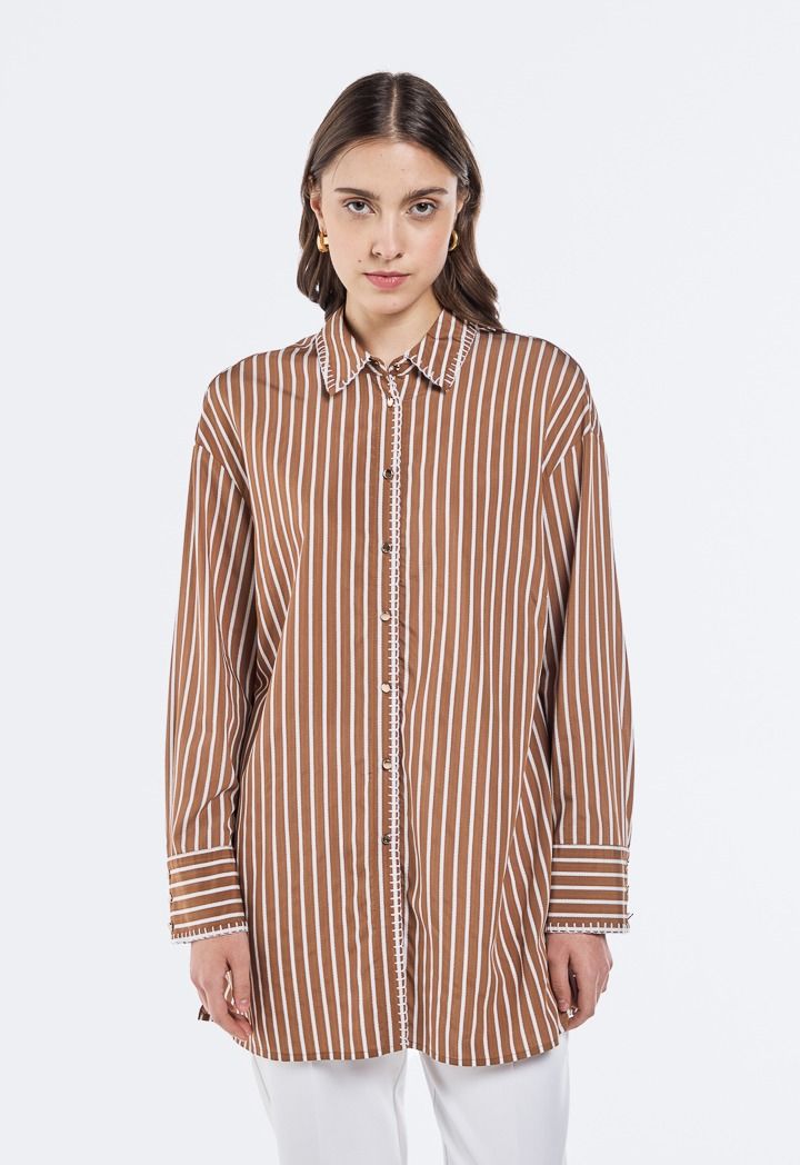 This classic stripe shirt makes a bold statement with its clean stripes and standout stitch details. Wear it on its own for a fresh, daring look, or layer it to add extra dimension to your outfit.