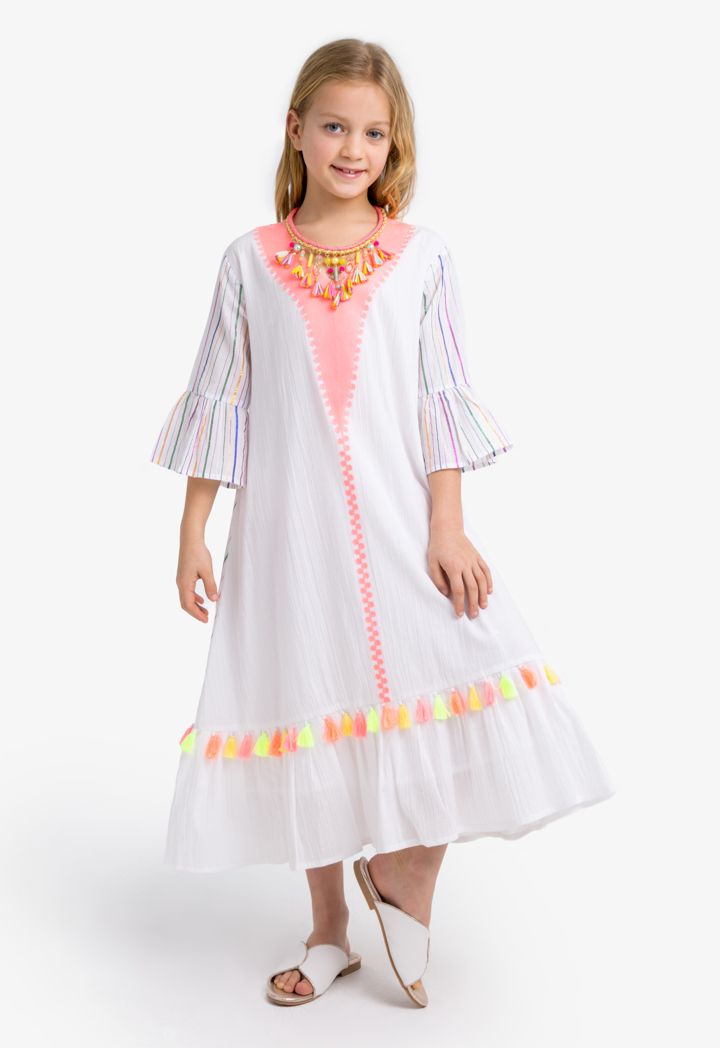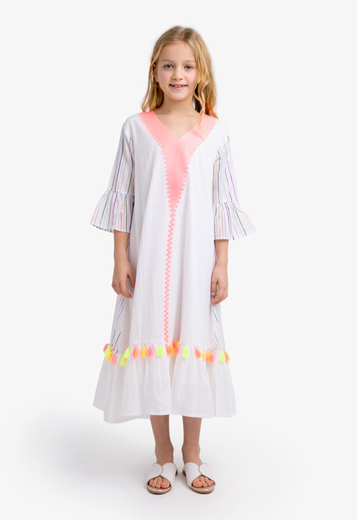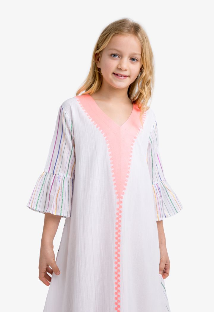Class and comfort never go out of style. Dress up your little girl with this Lurex, embroidered and Striped dress.