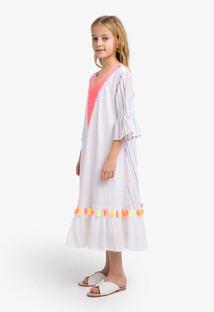 Striped Tassel Lurex Textured Dress |