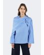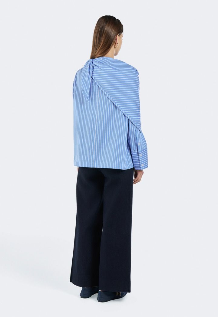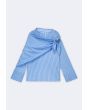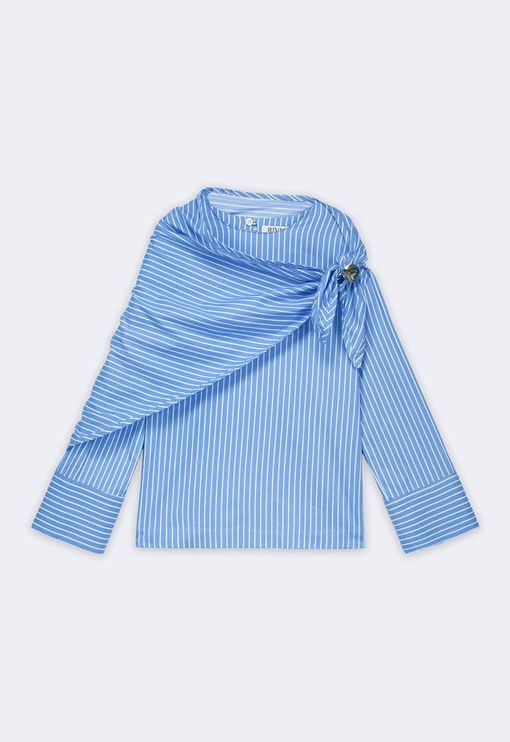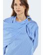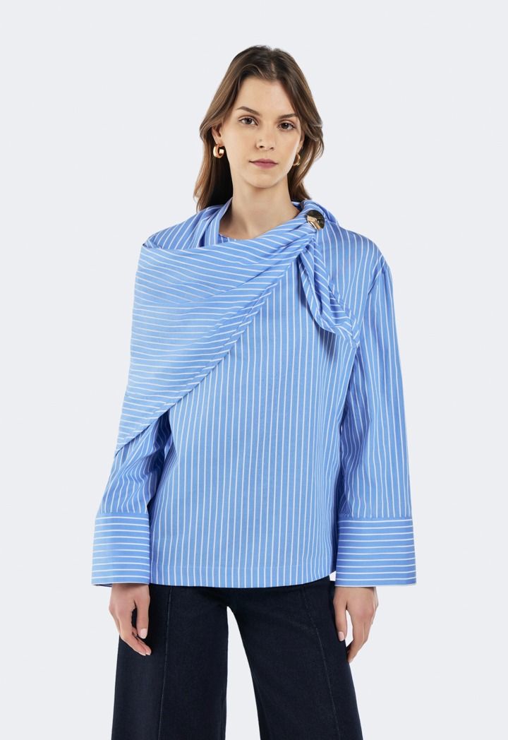 Soft, stylish, and versatile, a chic stripe top with an attached scarf for any occasion.