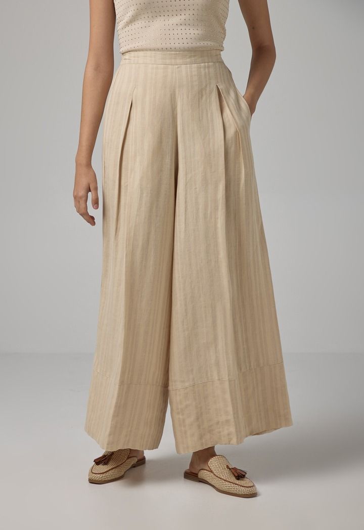 Design: Striped, Wide Leg, High Waist, Side Pockets, Pleated