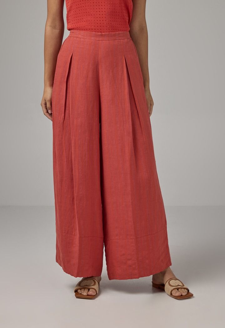 Design: Striped, Wide Leg, High Waist, Side Pockets, Pleated