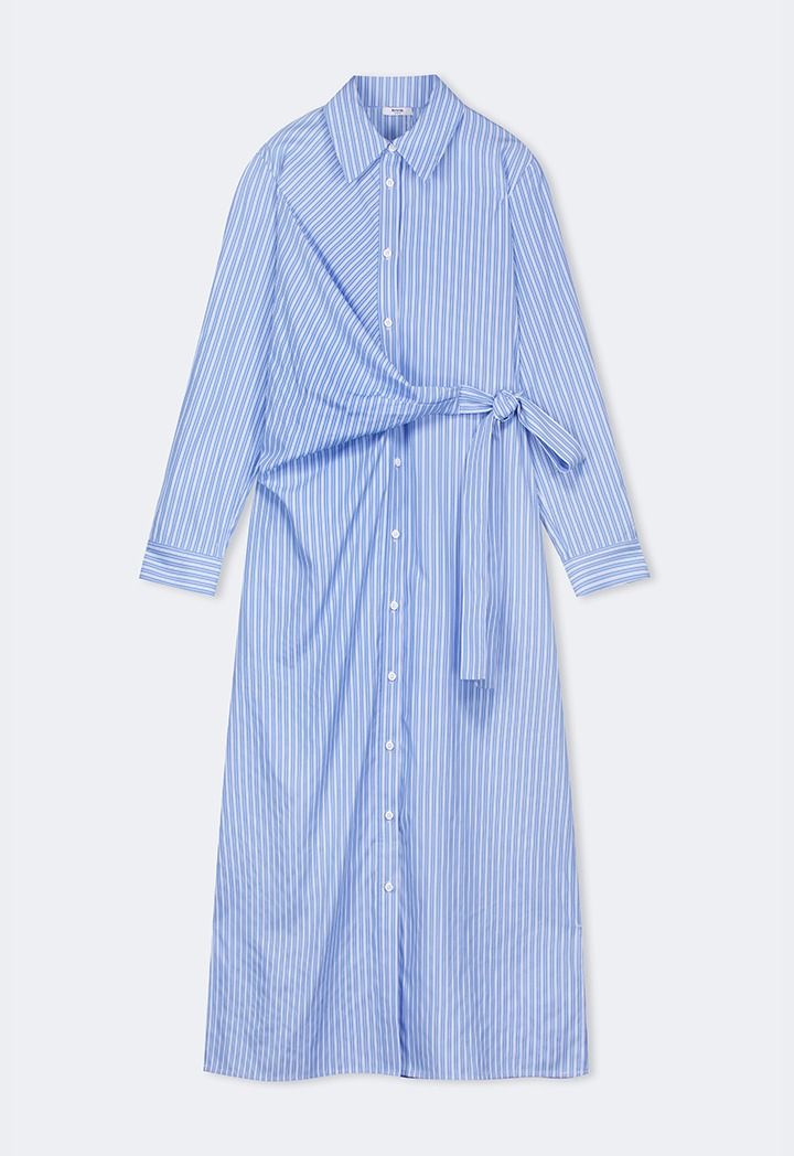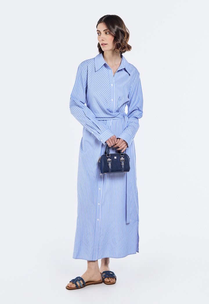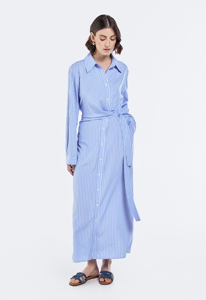 A beautiful blend of bold stripes and wrap details, this Dress is a statement piece for any wardrobe, it combines comfort with intricate detailing, creating a chic and eye-catching silhouette.