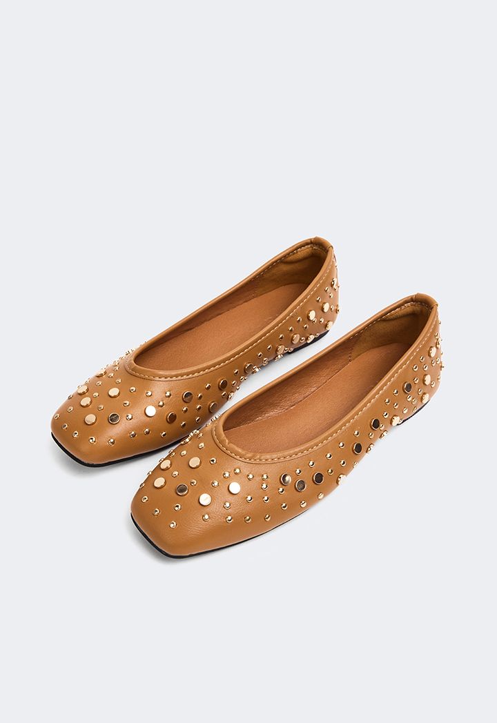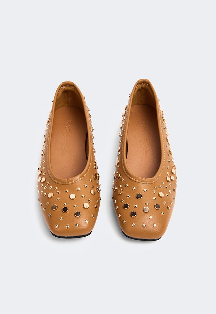 These ballet flats features a sparkling studded design with durable PU Leather.