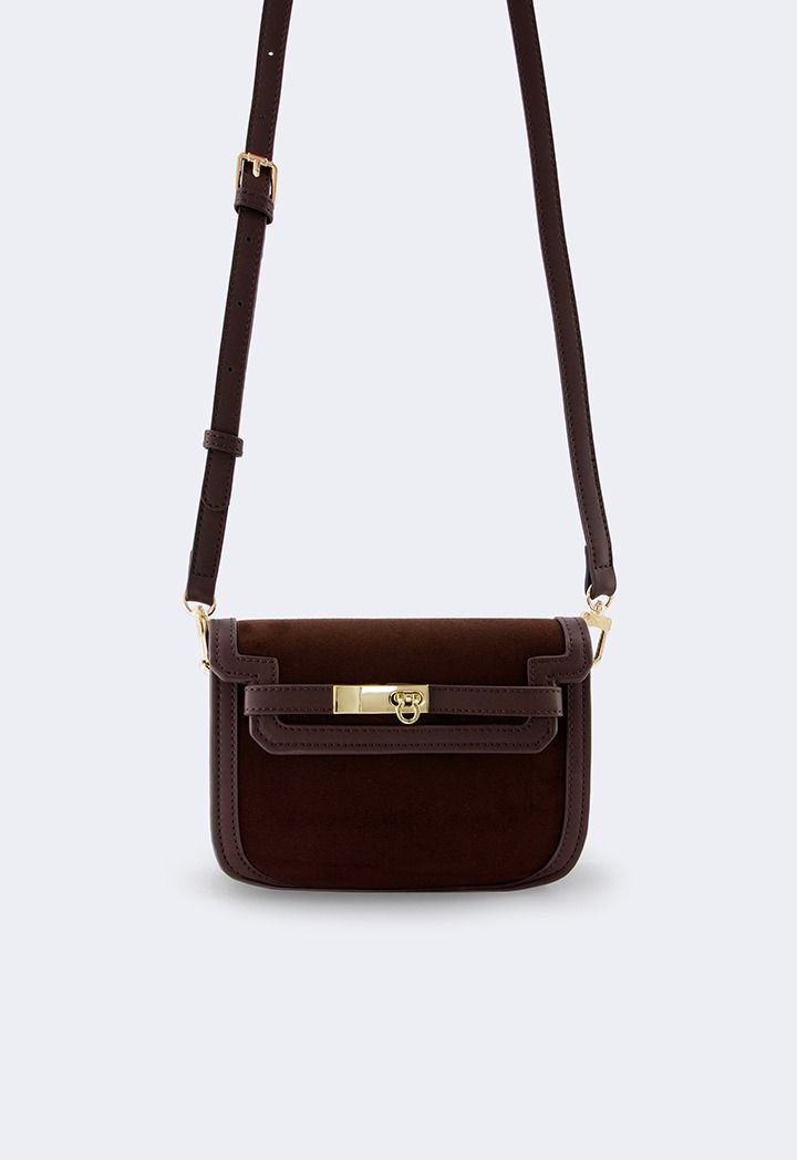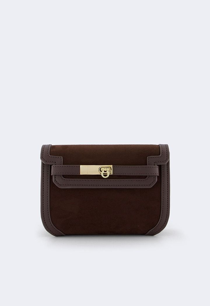 Design : Suede, PU Leather, Detachable Strap, Turlock Detail
