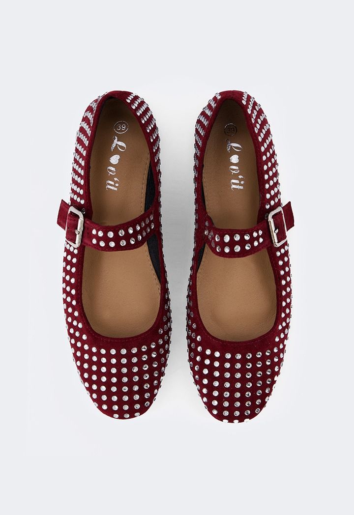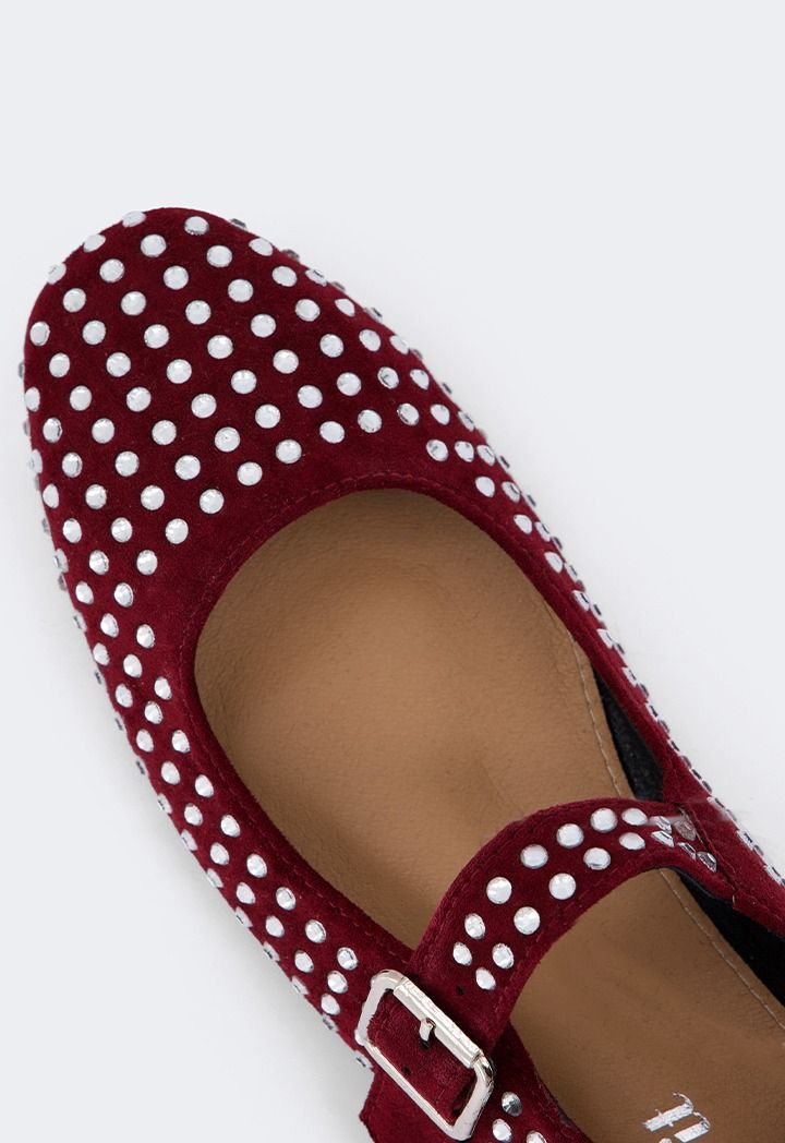 Suede Crystal Embellished Ballerinas |