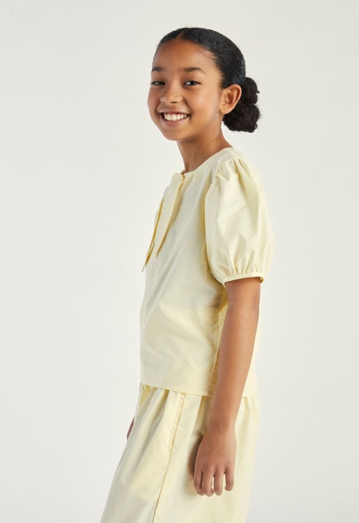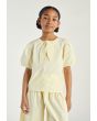 A comfortable set that features a tie neck top and matching pair of shorts.
