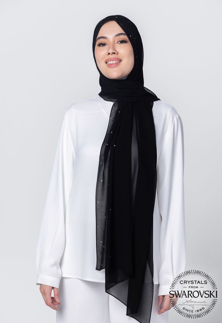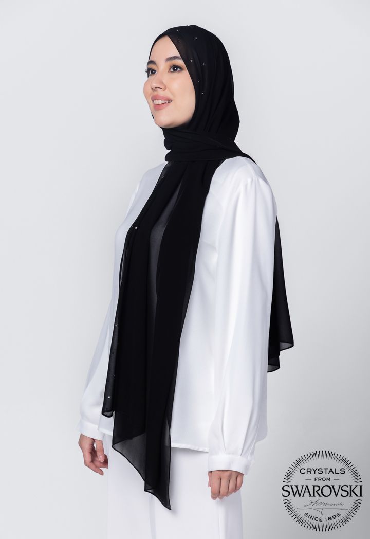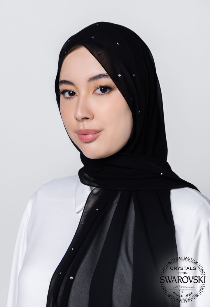 Elevate your look with this hijab that features a soft fabric that is embellished with Swarovski crystals.