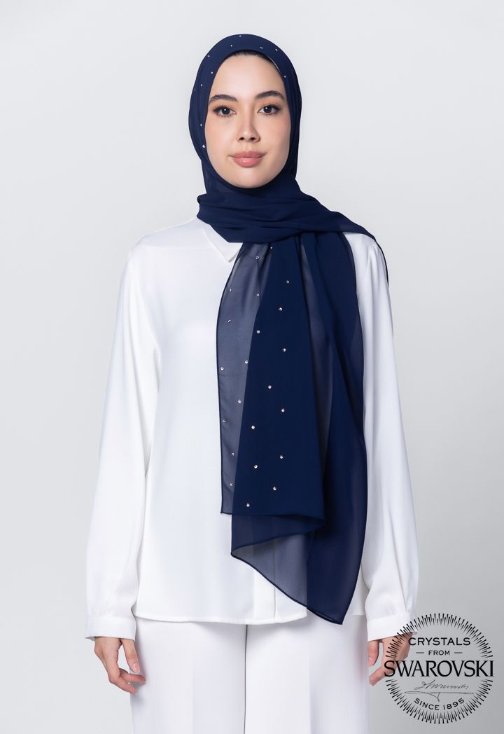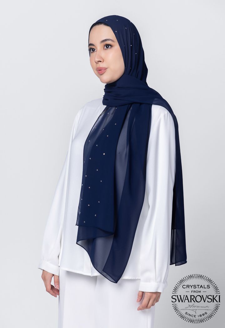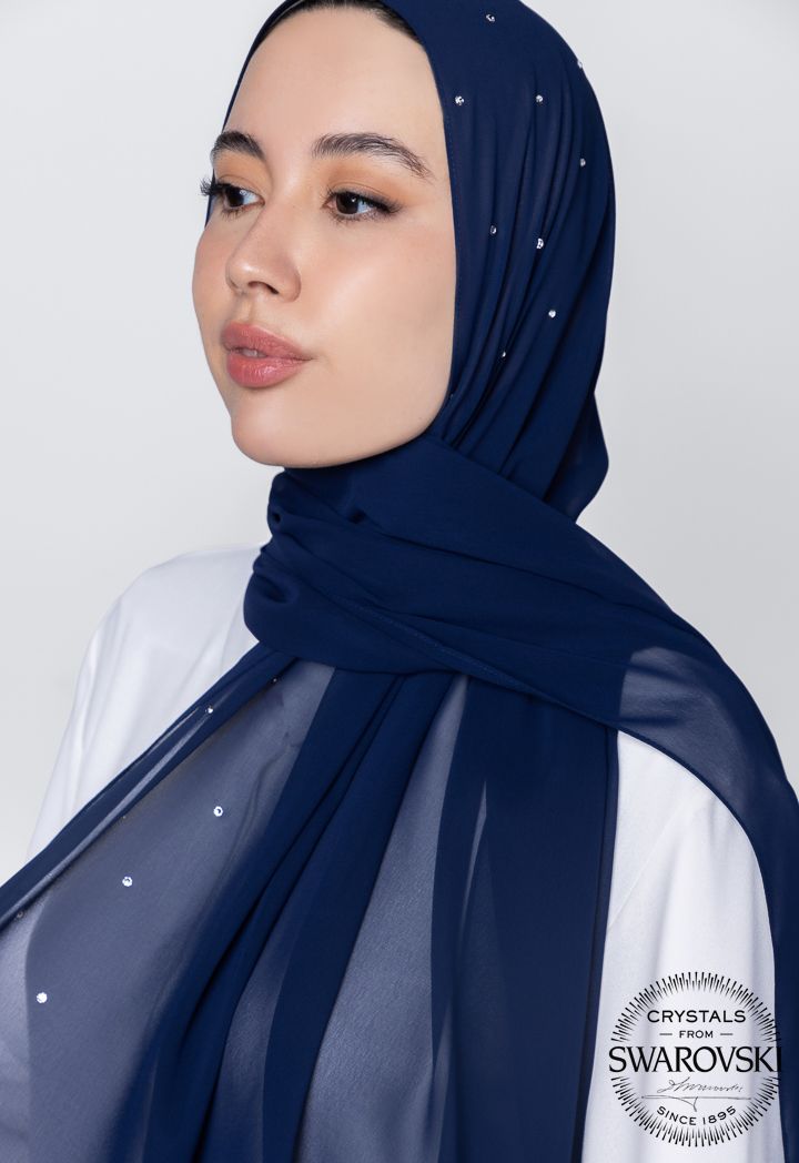Elevate your look with this hijab that features a soft fabric that is embellished with Swarovski crystals.
