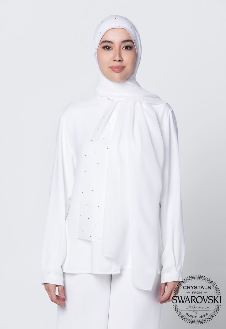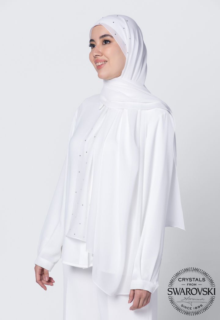 Elevate your look with this hijab that features a soft fabric that is embellished with Swarovski crystals.