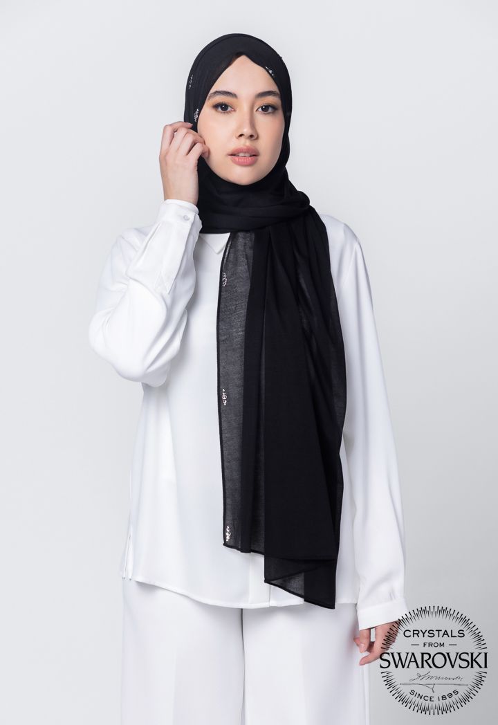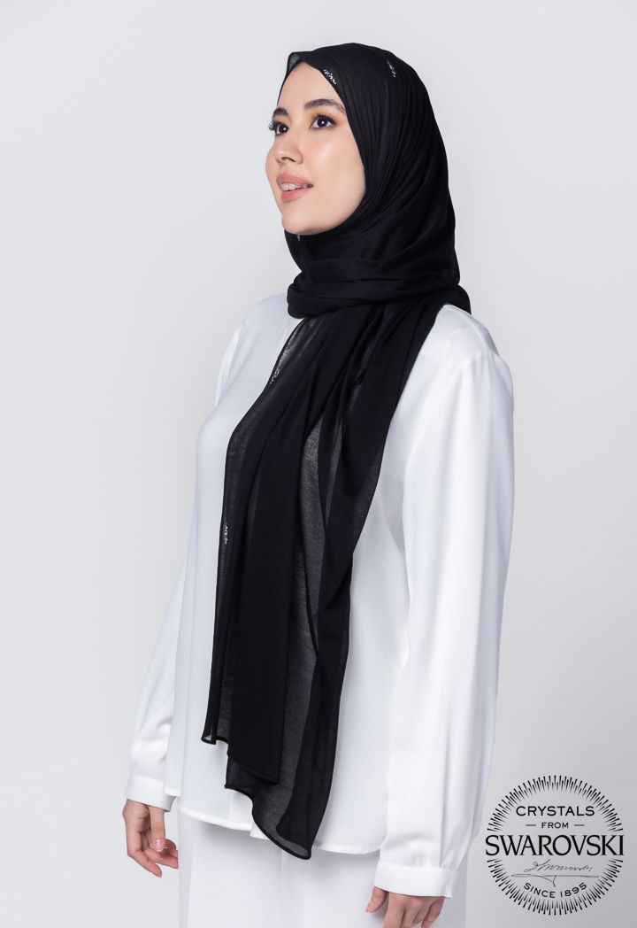 Improve your winter and fall looks with this Swarovski crystal embellished hijab shawl that will keep you warm for sure.