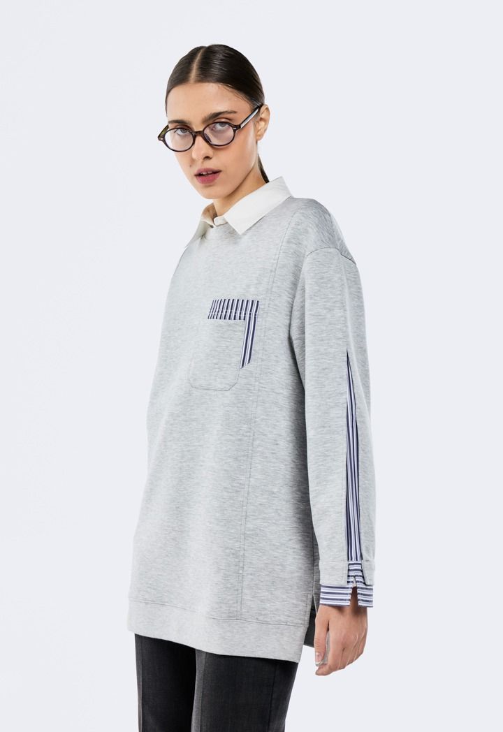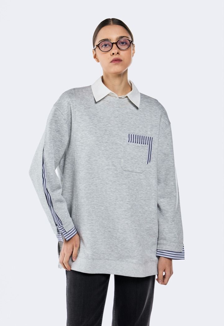 Elevate your everyday style with this eye-catching sweater. The unique cut-out sleeves and inner stripes add a modern twist to classic comfort.