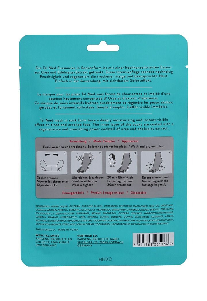 Application: Remove the socks from the package and put them on. Leave on for approx. 20min and relax. Then remove the socks and gently massage in the serum residue. The socks are for single use. It is best to use in the evening before going to bed.